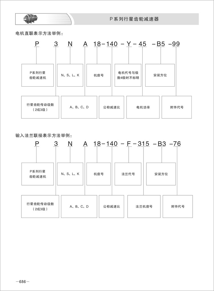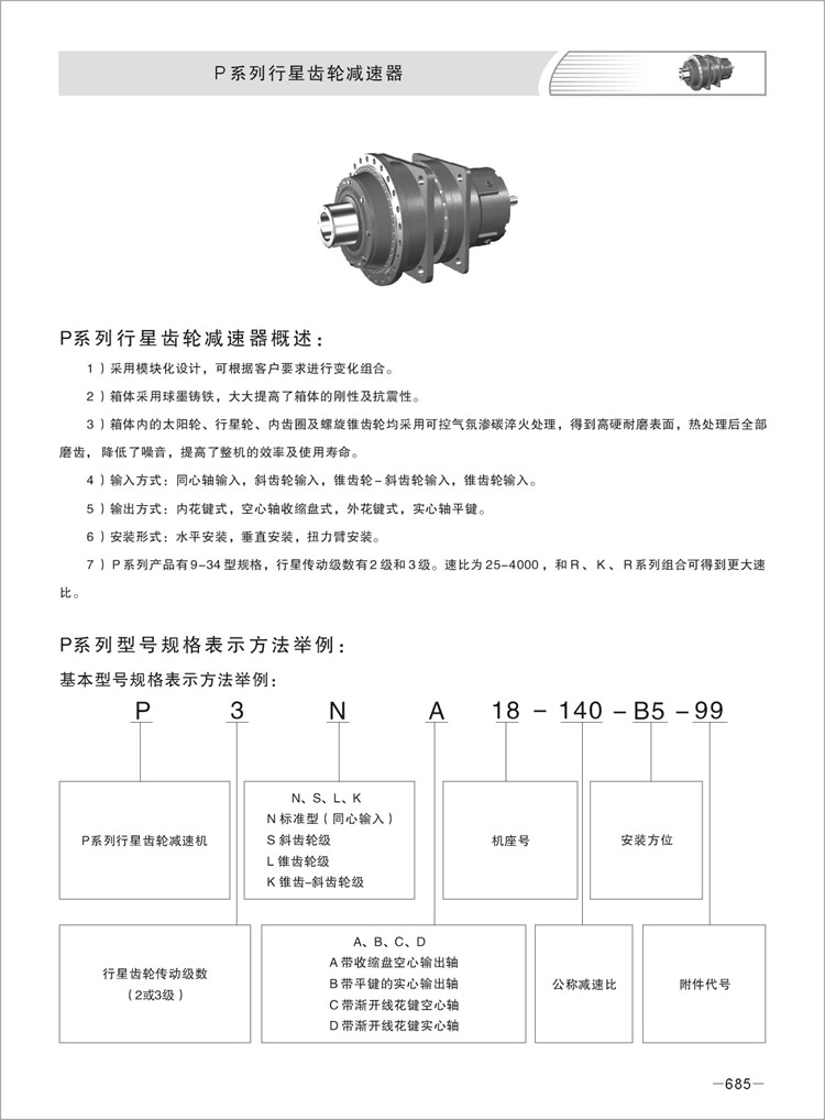 5、行星减速机P系列产品有9-34型规格,行星传动级数有2级和3级。