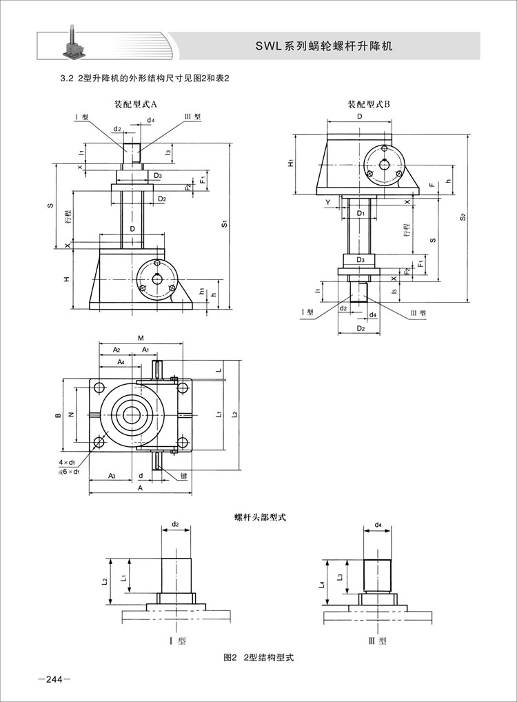 2型结构型式的丝杆头部:Ⅰ型(圆柱型)、Ⅲ型(螺纹型)