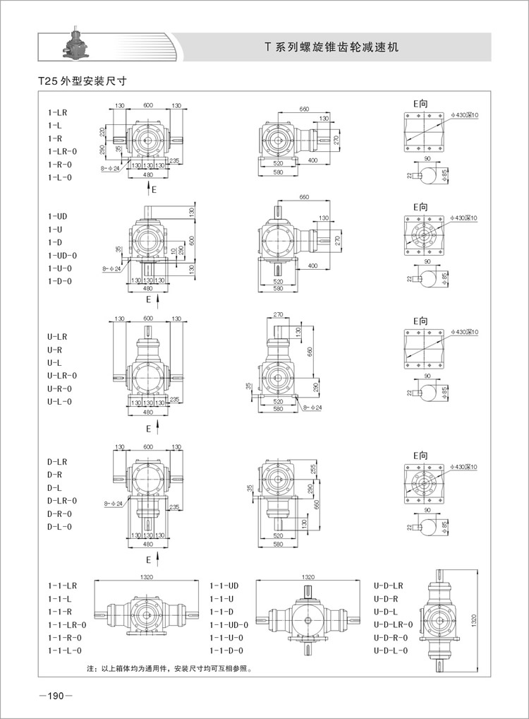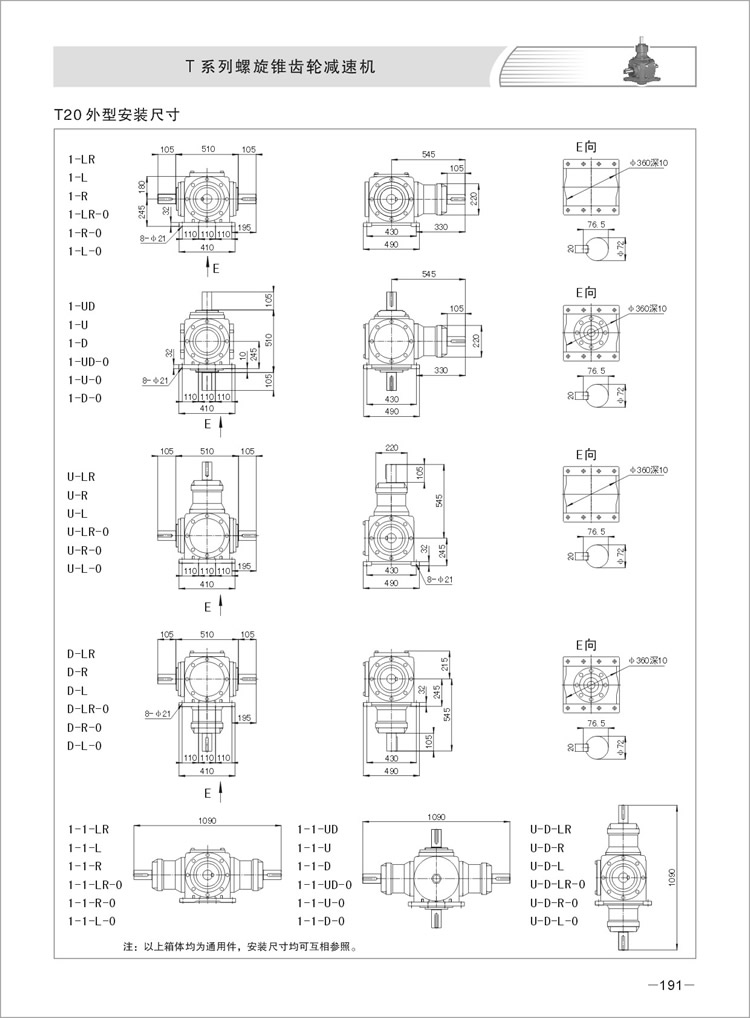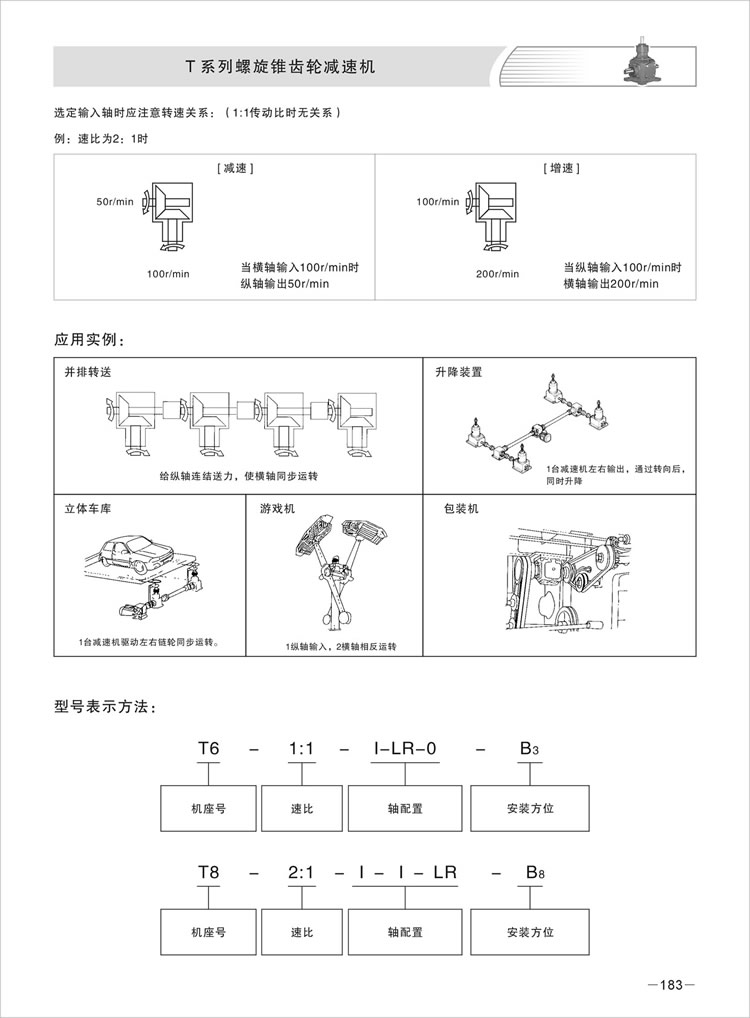 1T系列螺旋伞齿轮转向箱,标准化,多品种, 速比全部为实际传动比。平均效率达98%