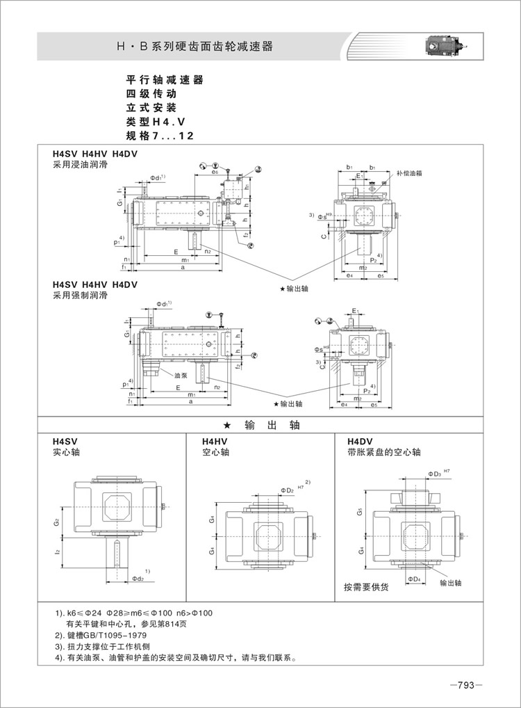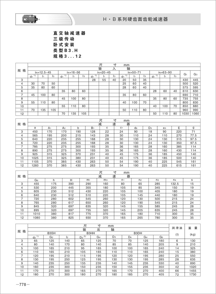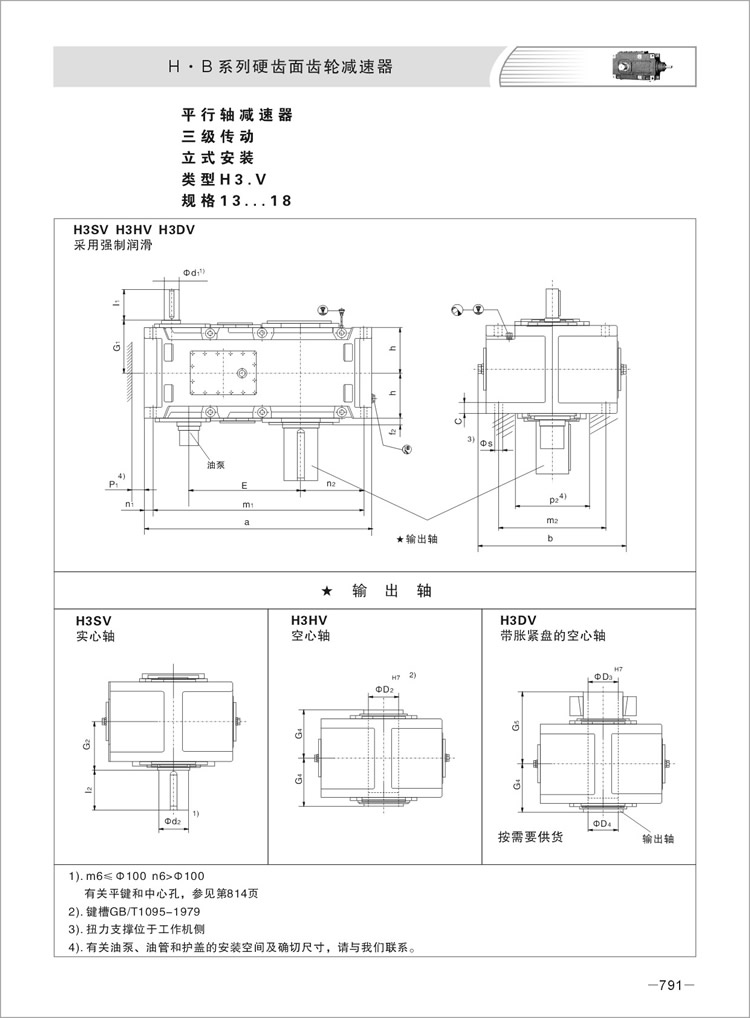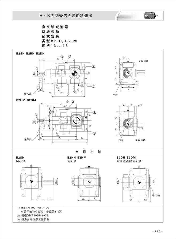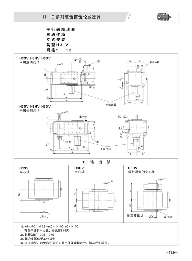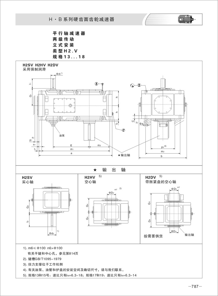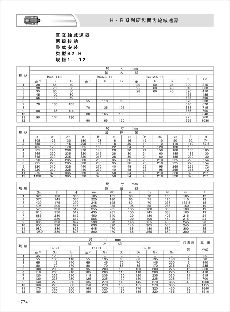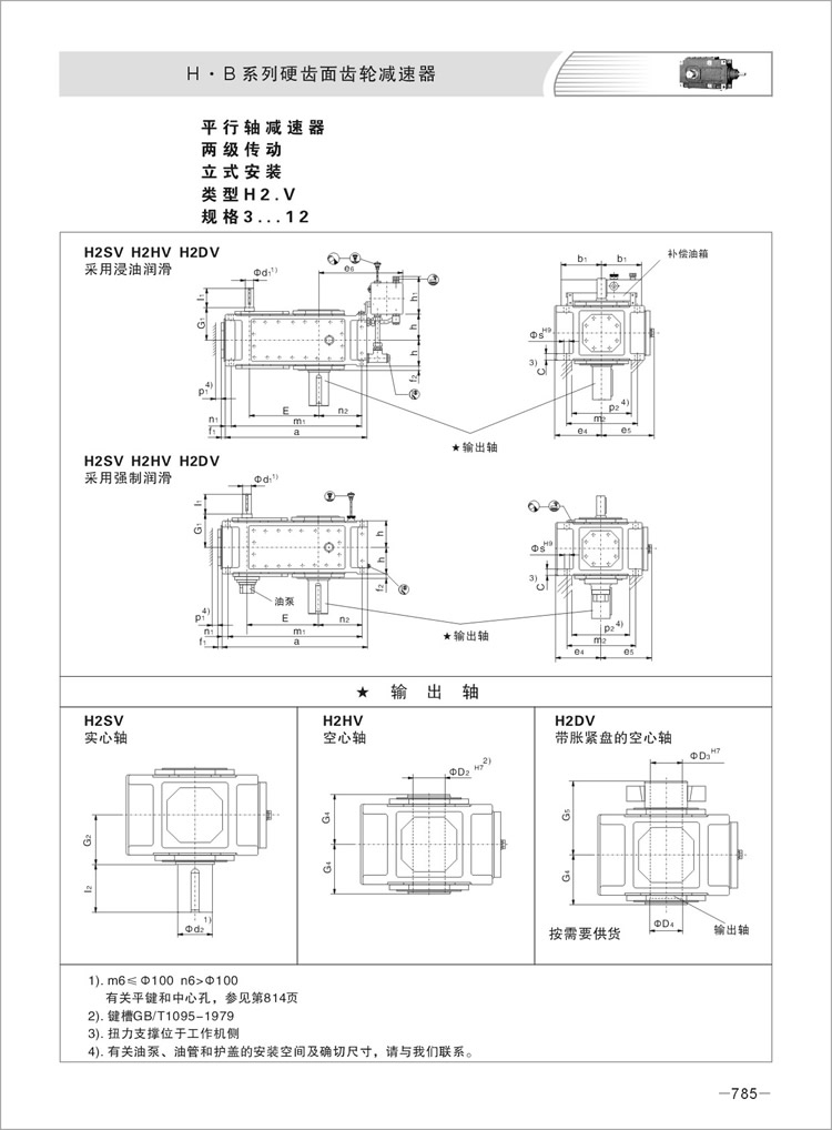 1. H、B大功率齿轮减速机采用通用设计方案,可按客户需求变型为行业专用的非标齿轮箱。