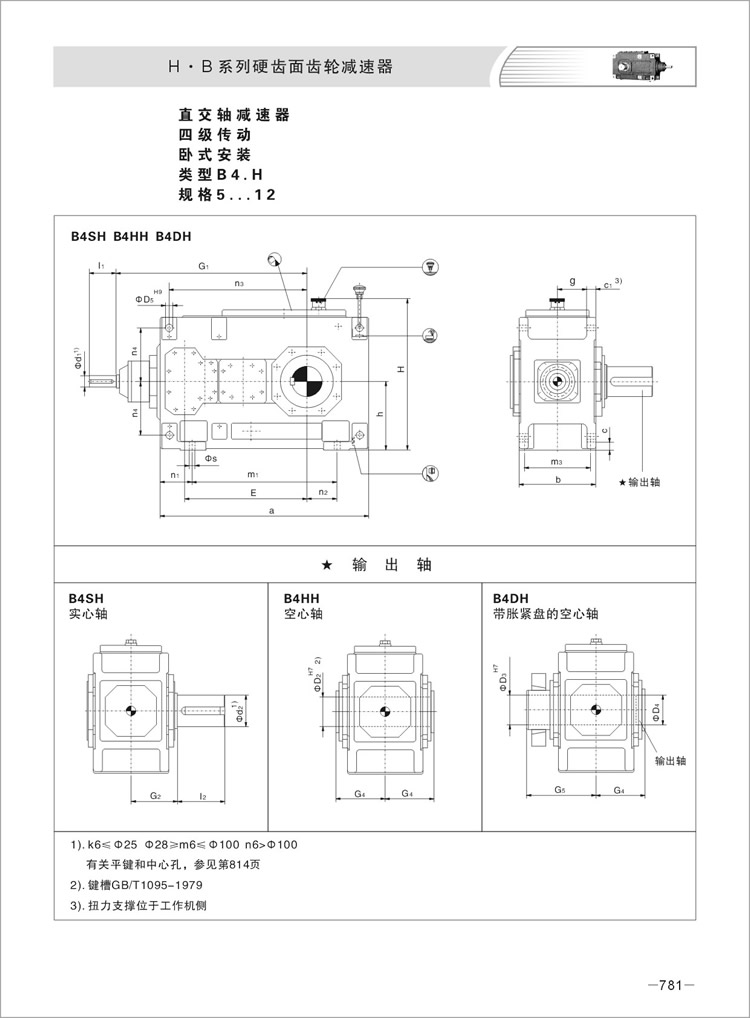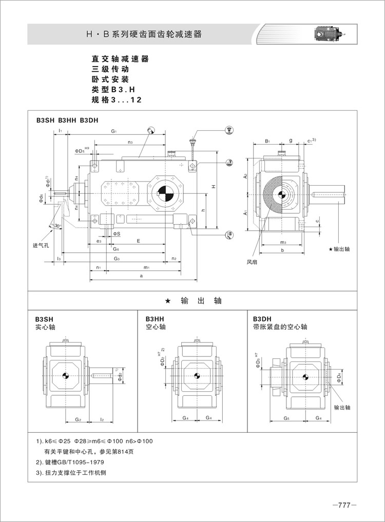 5.输出方式:带平键的实心轴、带平键的空心轴、胀紧盘联结的空心轴、花键联结的空心轴、花键联结的实心轴和法兰联结的实心轴。