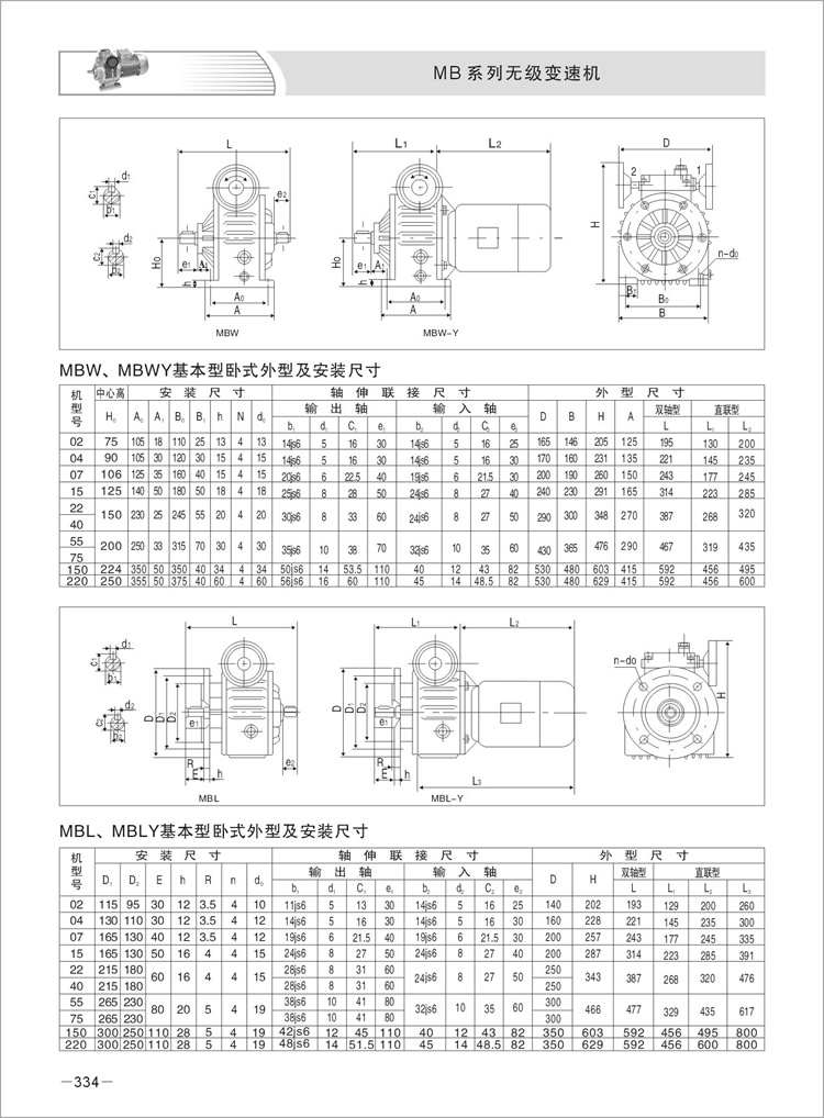 MBL02、MBL04、MBL07、MBL15、MBL22、MBL40、MBL55、MBL75