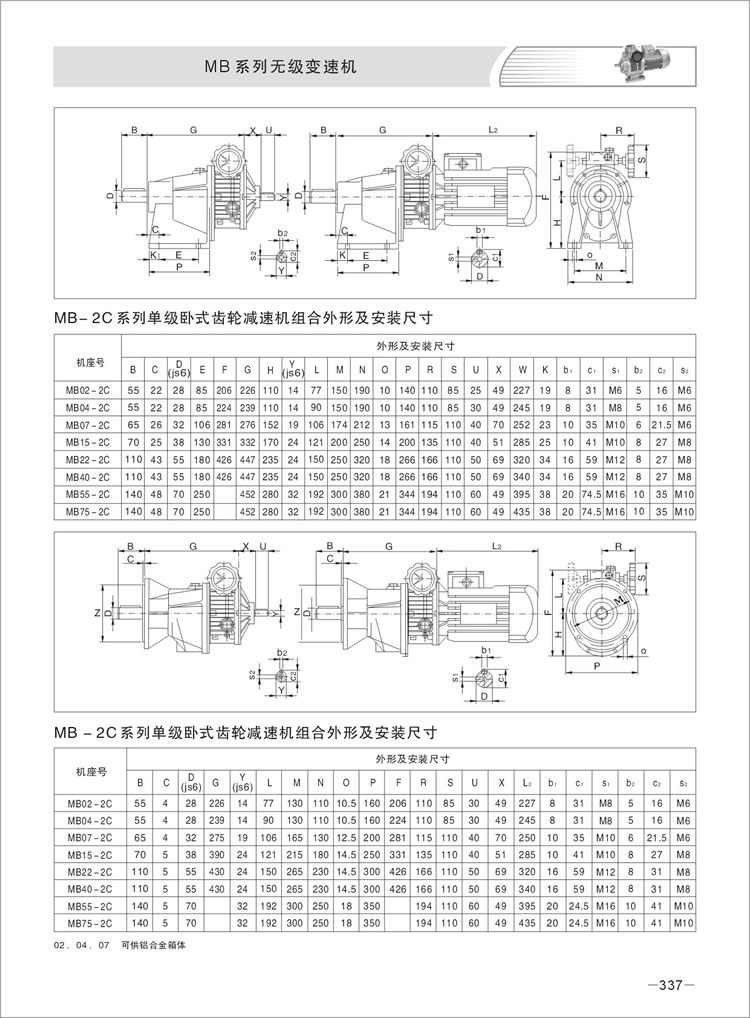 MB02、MB04、MB07、MB15、MB22、MB40、MB55、MB75