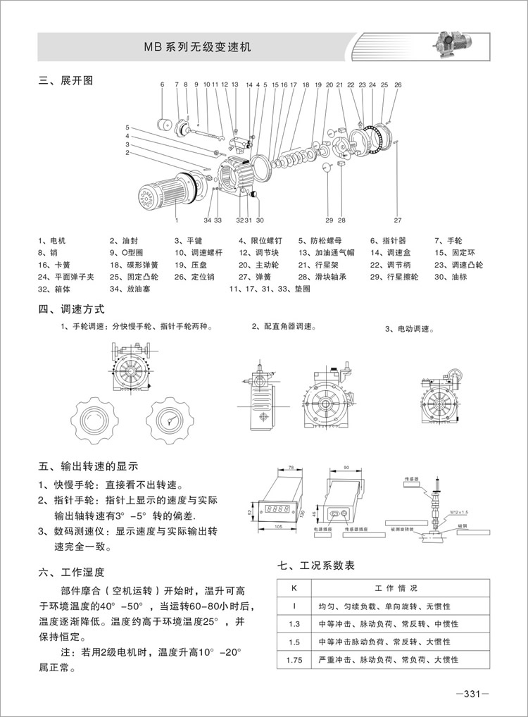 3、MB无级变速机必须在开机情况下方可调速,否则将损坏零件。