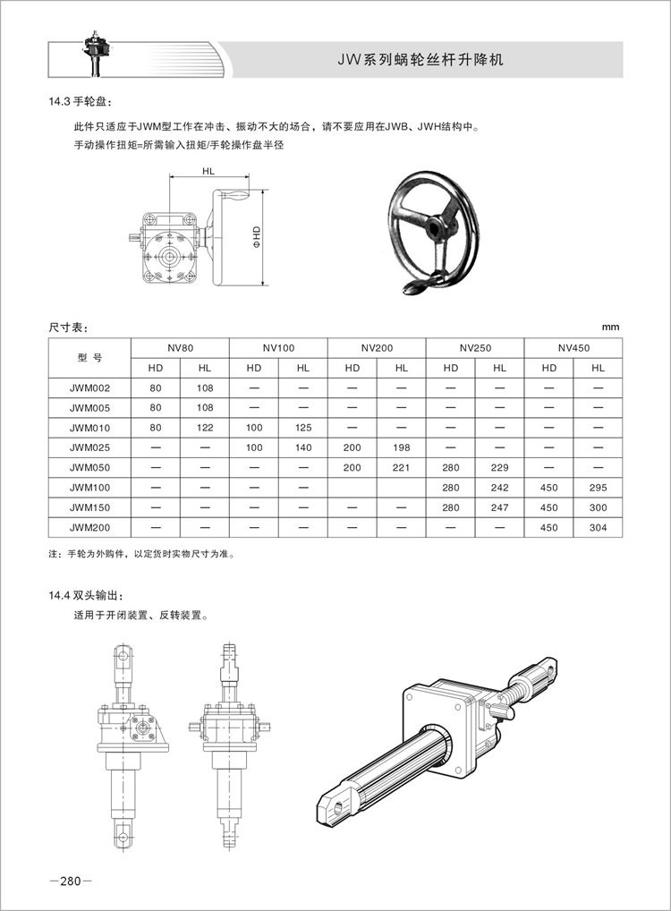 锐琛传动设备(上海)有限公司专业生产制造 和销售减速机及加工定制非标减速机,等先进 的机械设备和成套产品JWM/JMB系列梯形滚 珠丝杆升降机 销售部电话:021-67966691 传 真:021-67966695 Q Q 号:2728077822 邮 箱:2728077822@qq.com 销售 主管:18217276386(杨喻钦) :18217277368(章志勇) 公司 网址:http://www.shrccd.com 包装运输及三包标准: 1.质量要求技术标准、供方对质量负责的条件和期限:技术按减、变速机行业标准质量三包,保修壹年. 2.交(提)货地点、方式:货到需方,运费供方负担。 3.运输方式及到达站港和费用负担: 运费供方负担。 4.合理损耗及计算方法: 5.包装标准、包装物的供应与回收: 纸/木箱包装,不回收。 6.验收标准、方式及提出异议期限: 7.结算方式及期限: