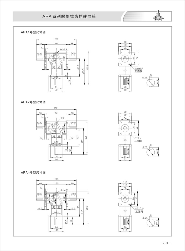 1、ARA螺旋锥齿轮转向箱-ARA转向箱的介绍,外形尺寸,轴配置及传动能力表