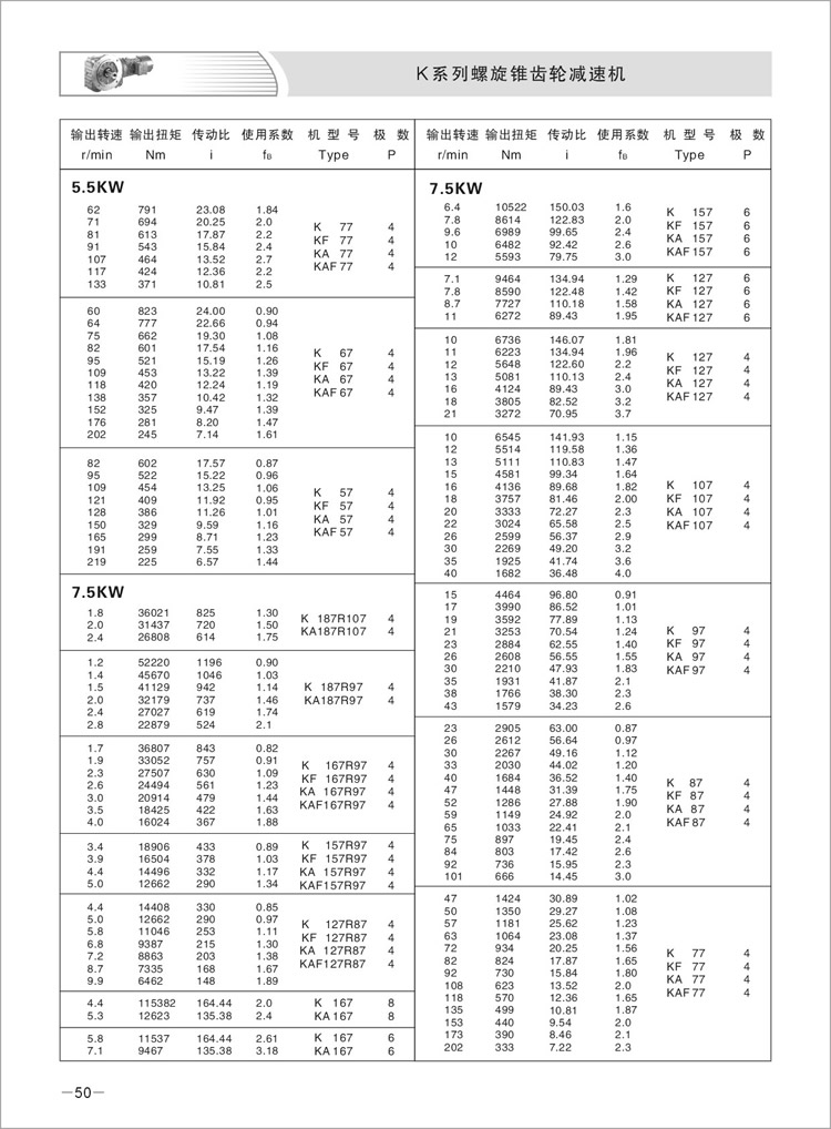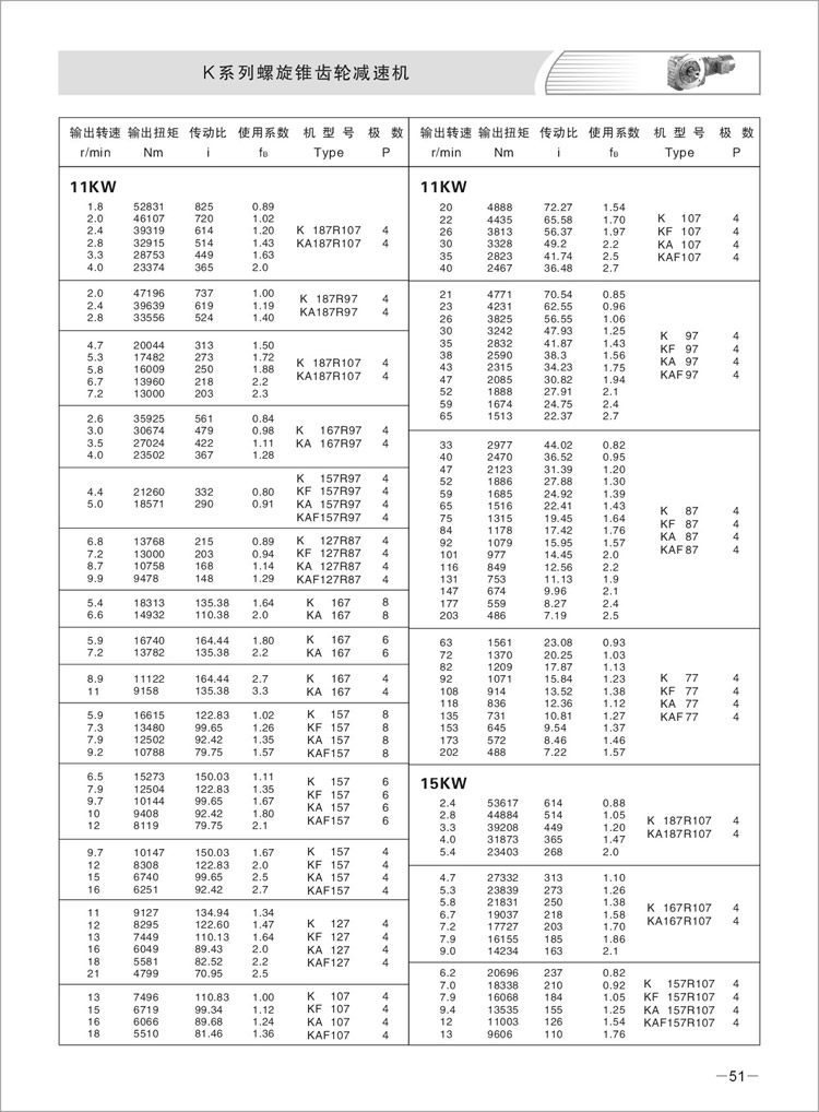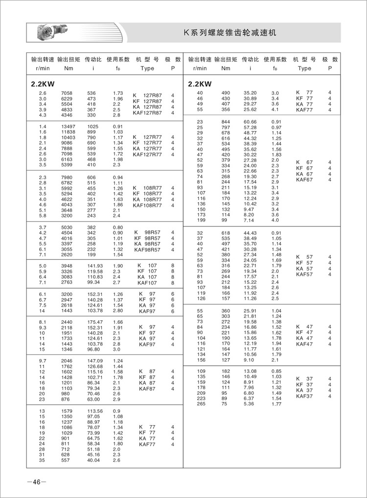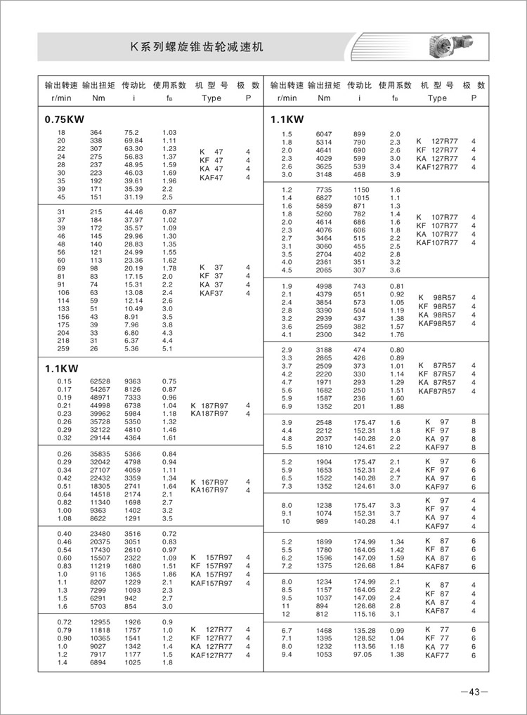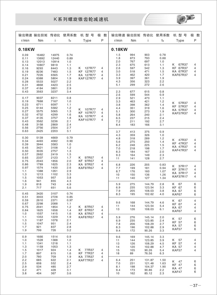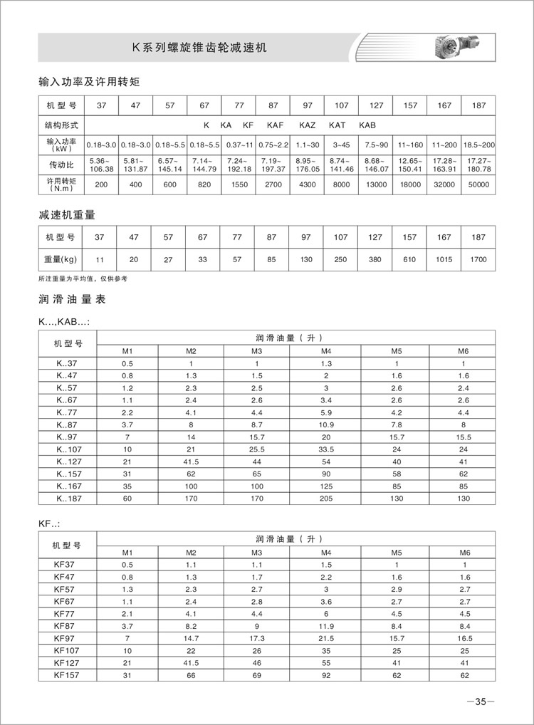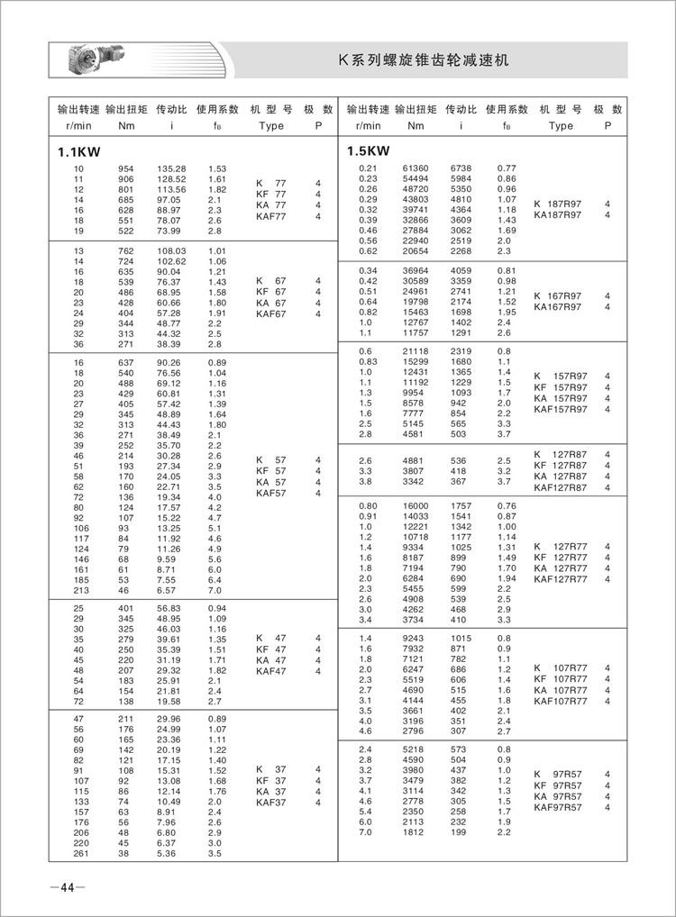 速比范围:基本型5.36~197.37,K系列/R系列组合型可达到32625