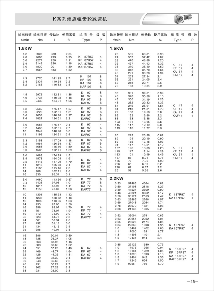 1、K系列减速机结合国际技术要求制造,具有很高的科技含量。