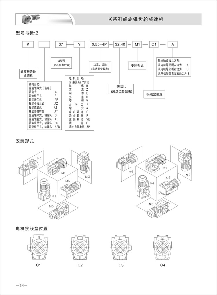 2、安装方式:底脚安装、空心轴安装、法兰安装、扭力臂安装、小法兰安装。