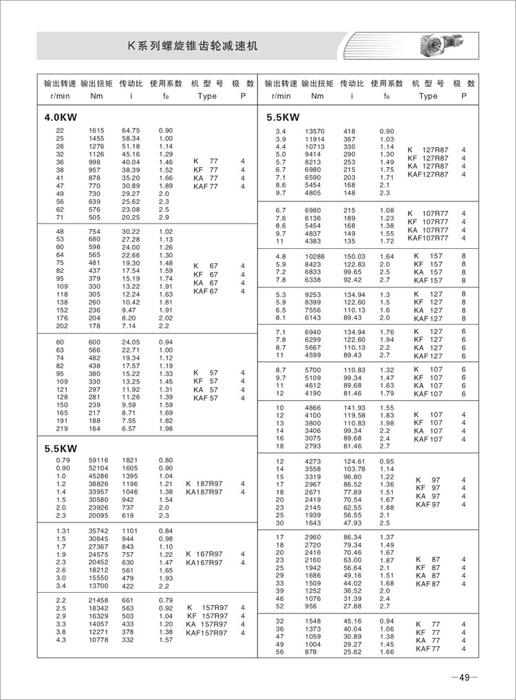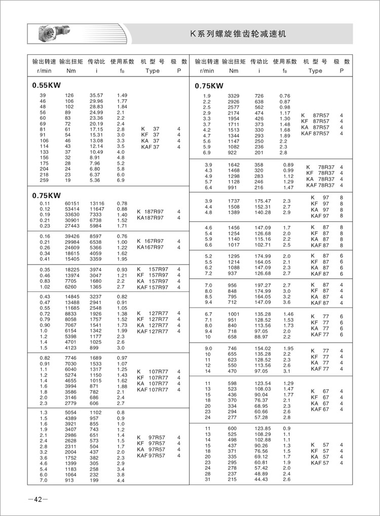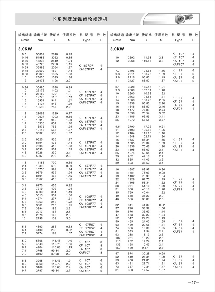 4、K系列螺旋锥齿轮减速机振动小,噪音低,节能高。