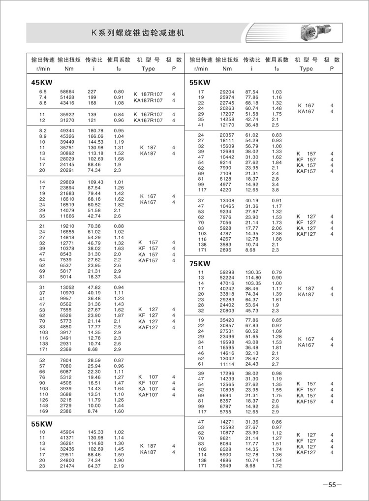 4、K系列螺旋锥齿轮减速机振动小,噪音低,节能高。