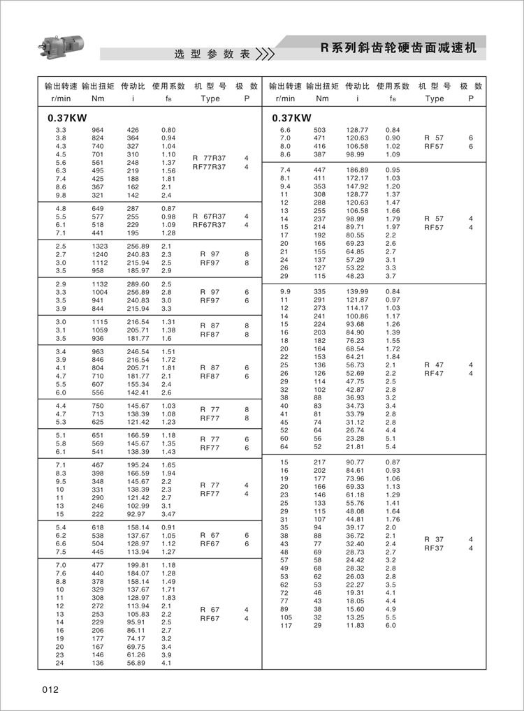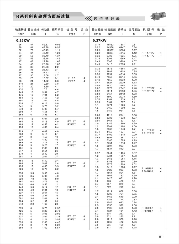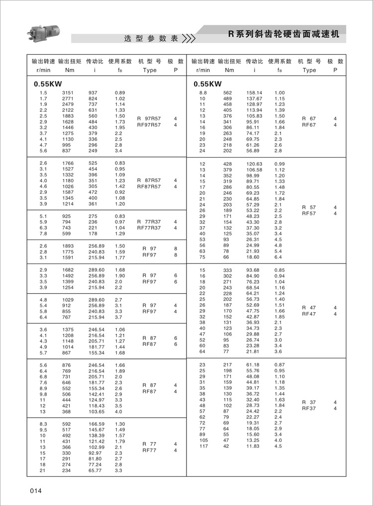 网站首页> 技术参数> R齿轮减速机选型参数表2