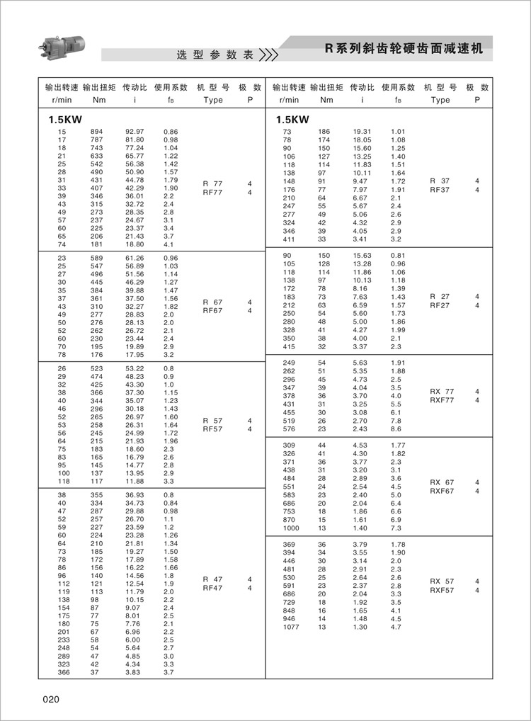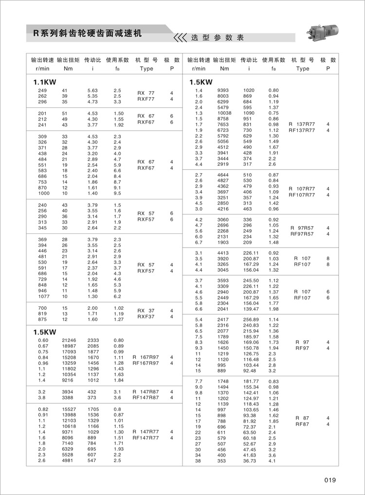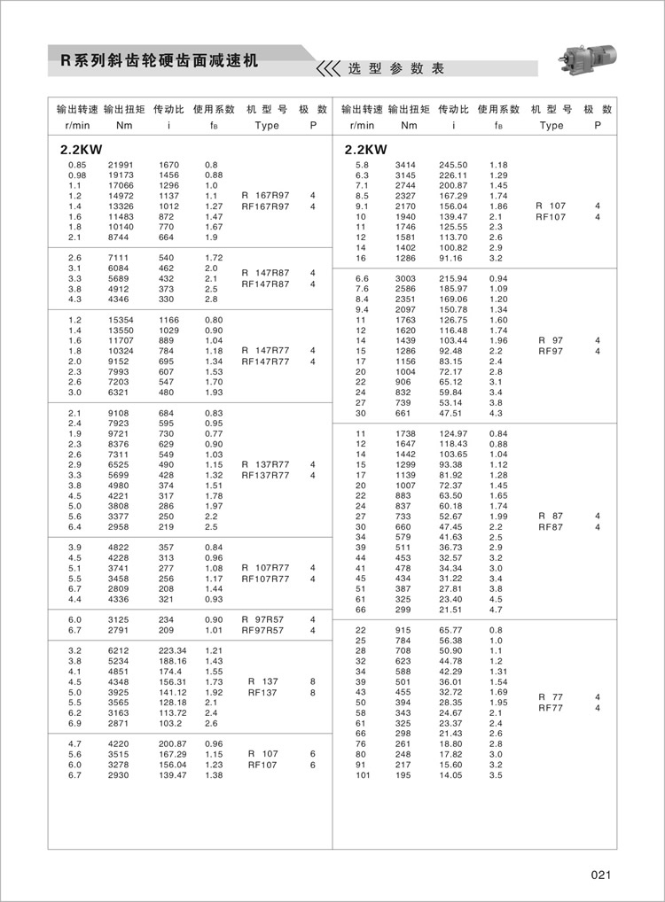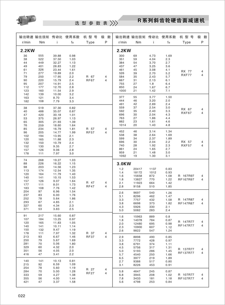 网站首页> 技术参数> R齿轮减速机选型参数表4
