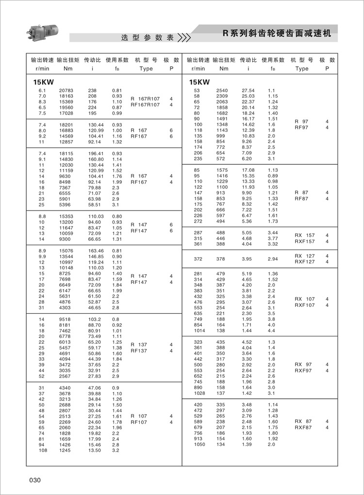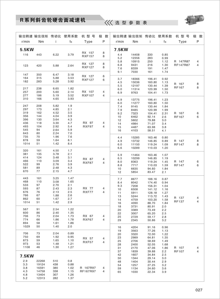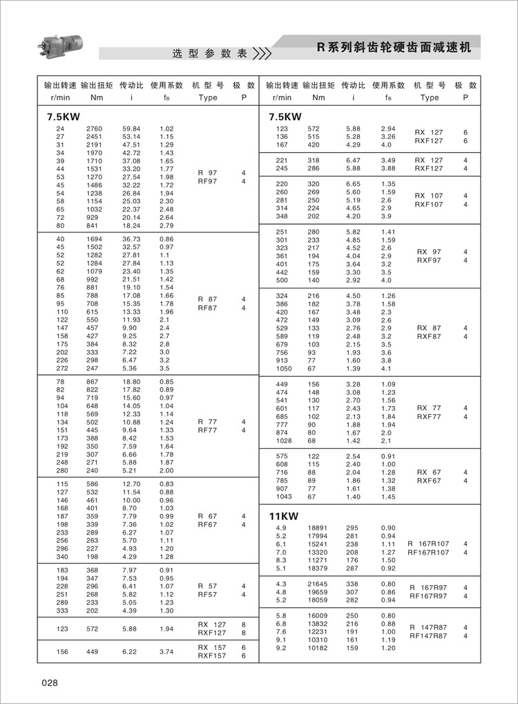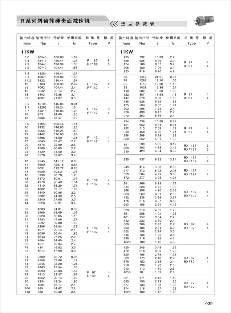 R齿轮减速机选型参数表6