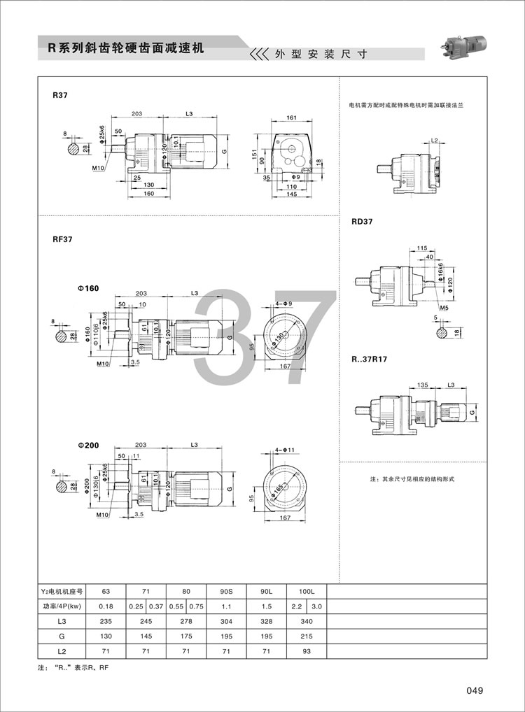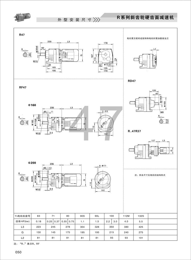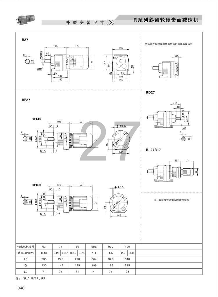 R齿轮减速机外形安装尺寸:27,37,47