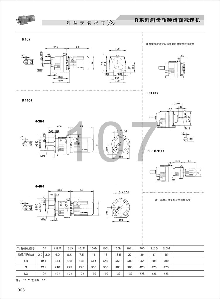 网站首页> 技术参数> R齿轮减速机外形安装尺寸:87,97,107