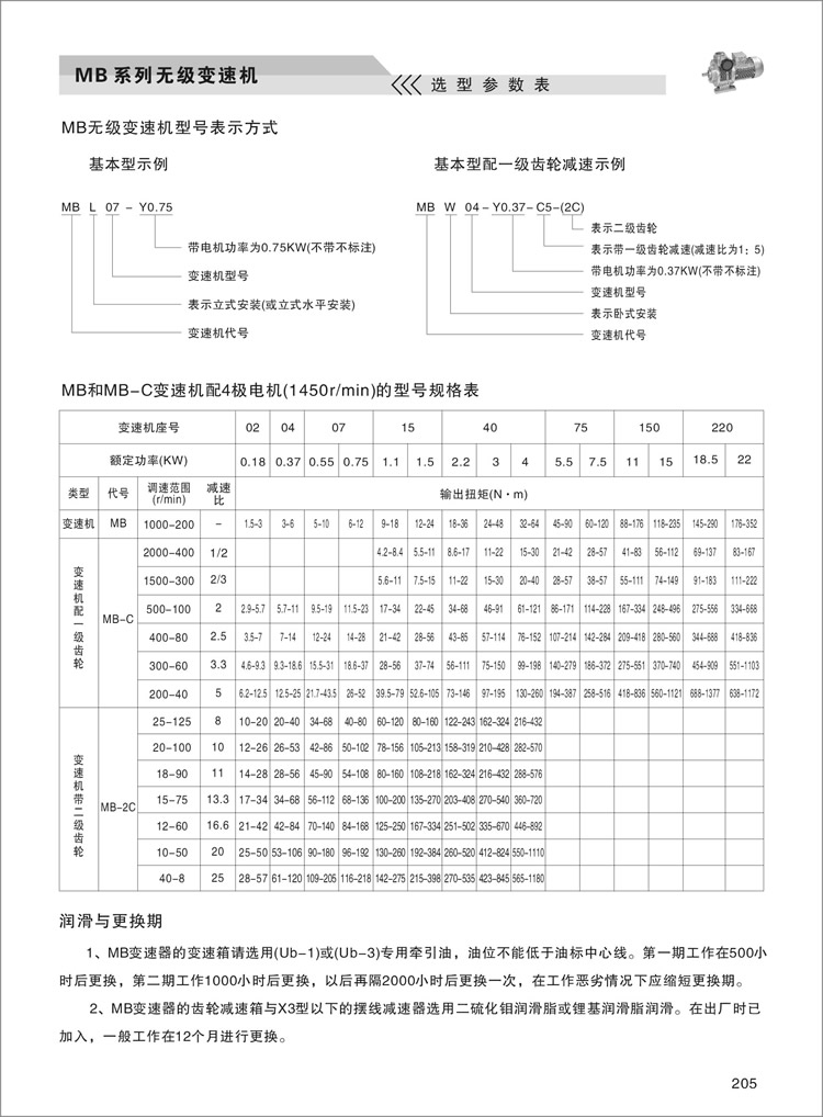MB行星摩擦式机械无级变速机选型参考表