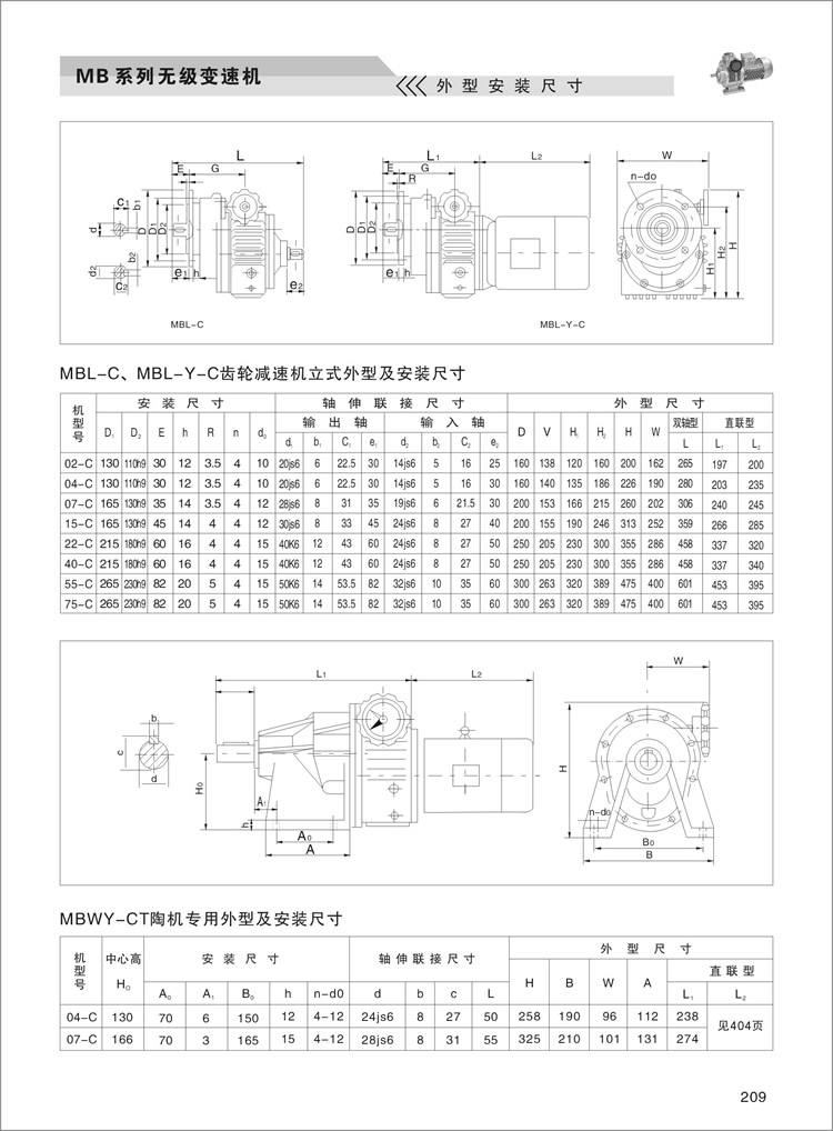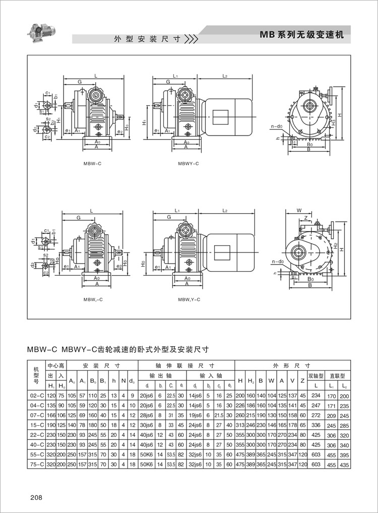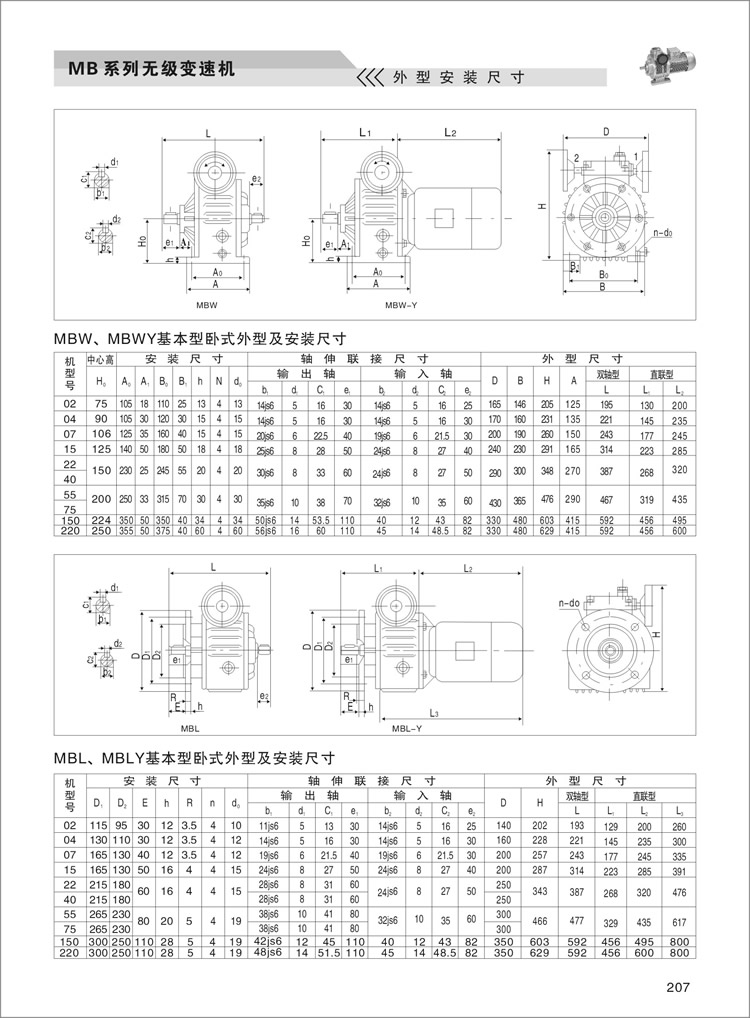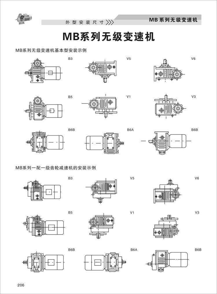 MB行星摩擦式机械无级变速机外型及安装尺寸