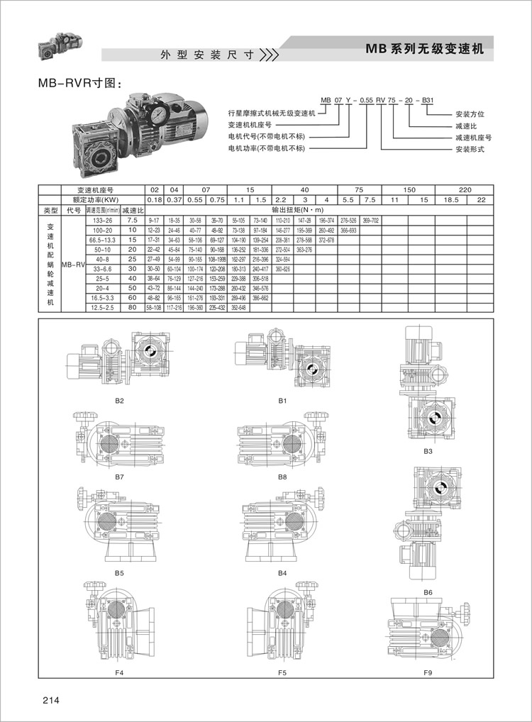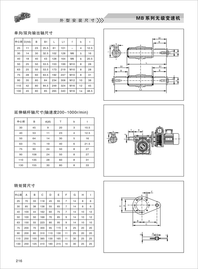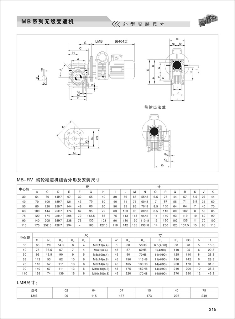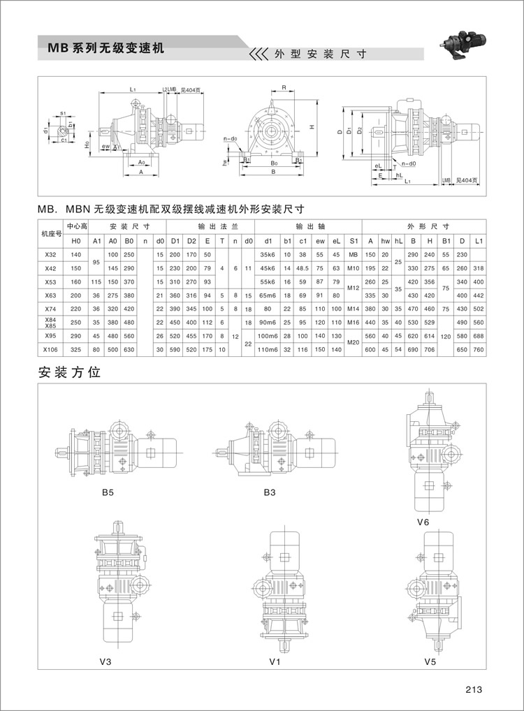>MB行星摩擦式机械无级变速机安装尺寸说明