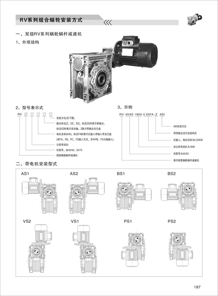 双级RV系列蜗轮蜗杆减速机型号及安装形式