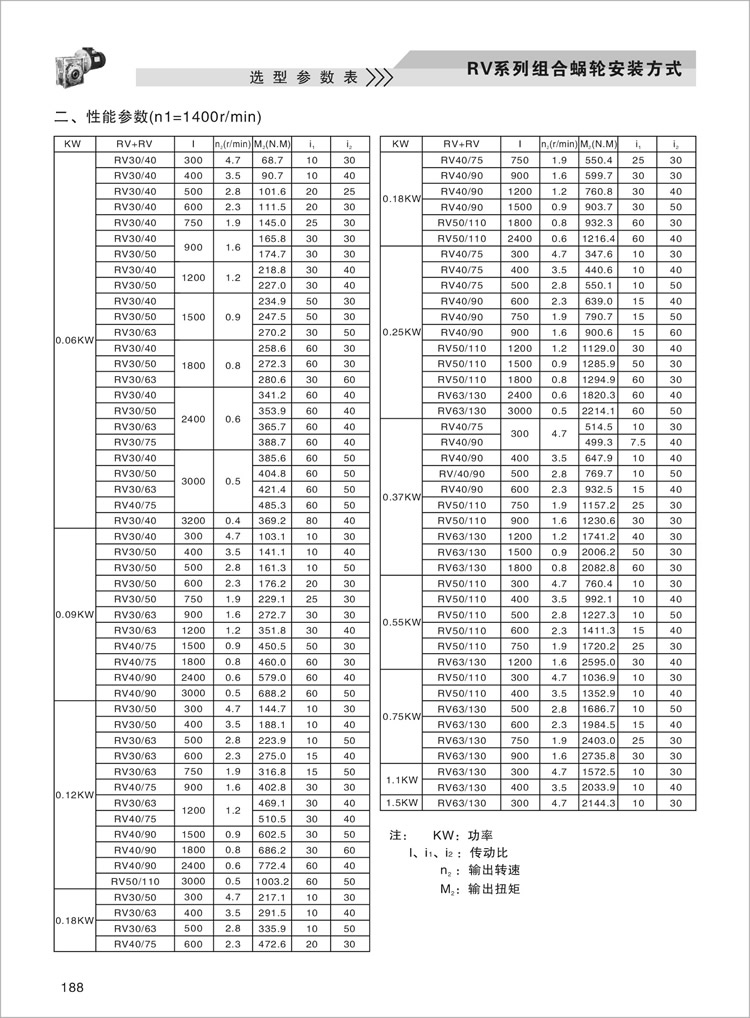 网站首页> 技术参数> 双级RV系列蜗轮蜗杆减速机选型参数表