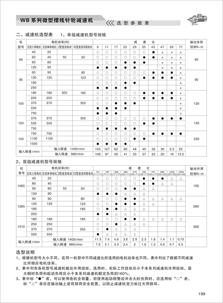 网站首页> 技术参数> WB微型摆线减速机-选型参数表