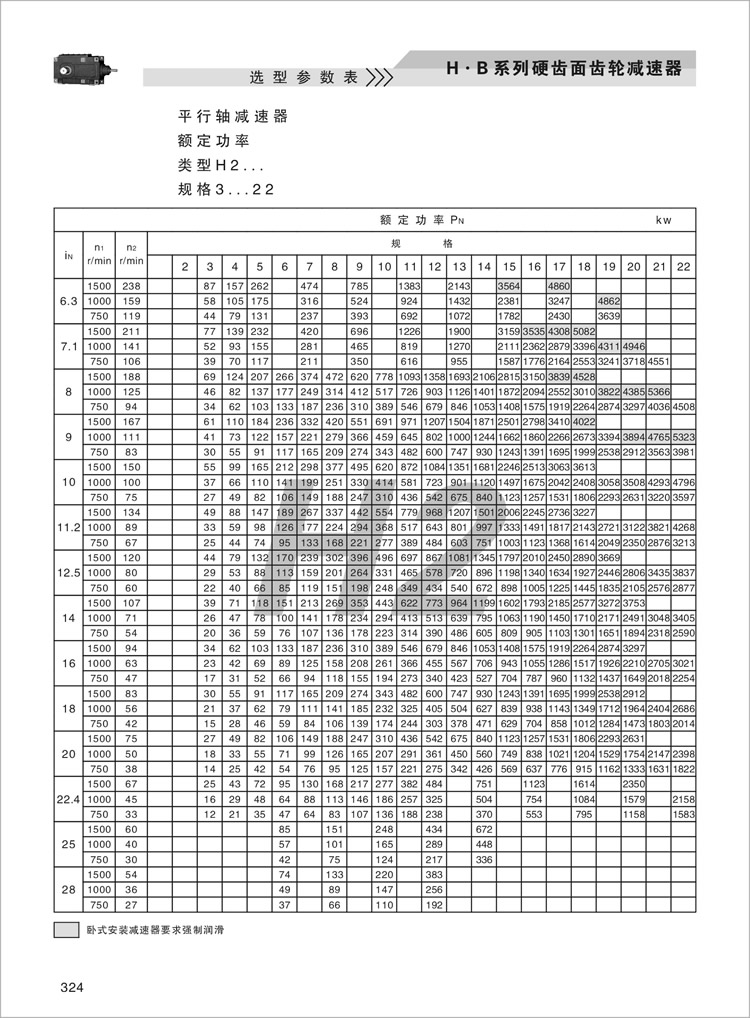 网站首页> 技术参数> HB系列硬齿面齿轮减速机-选型参数H1,H2,H3,H4