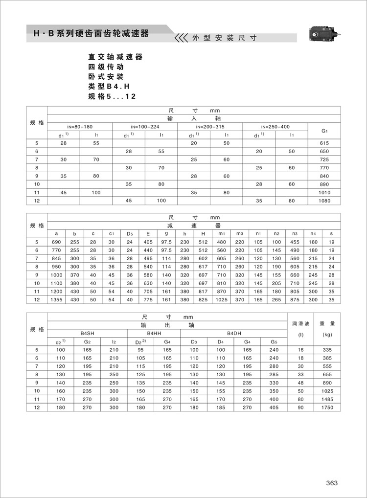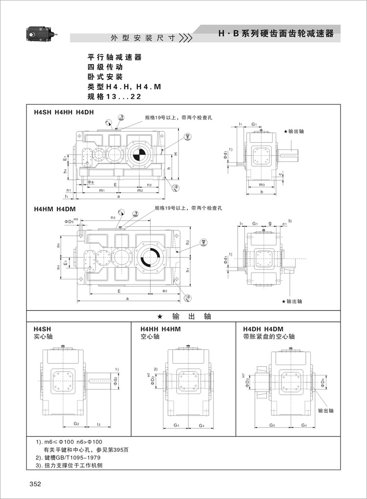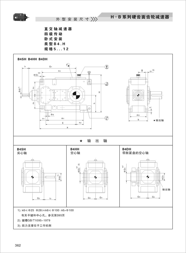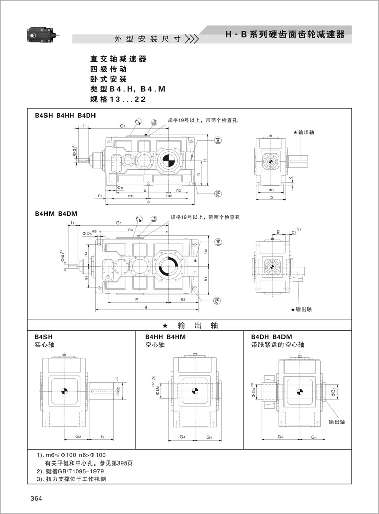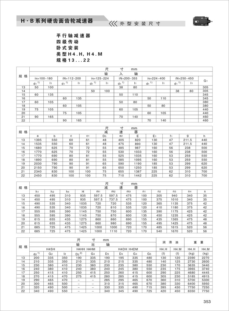 HB系列硬齿面齿轮减速机-外型安装尺寸H4H,H4M,B2H,H2M,B3H,B3M,B4H,B4M,