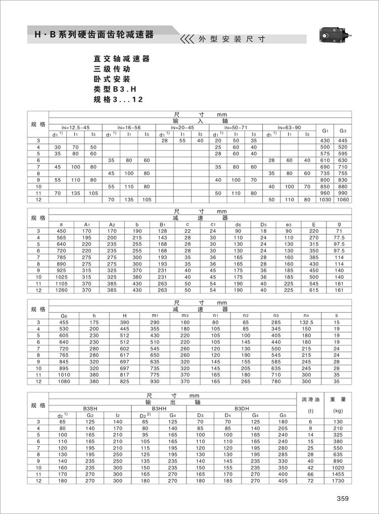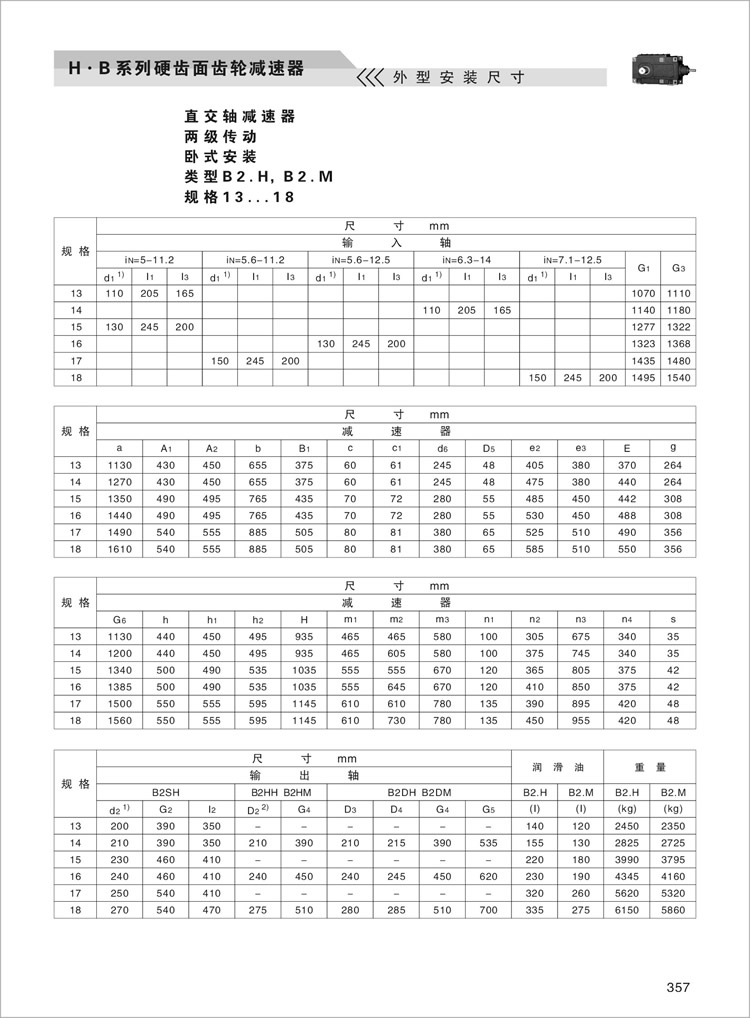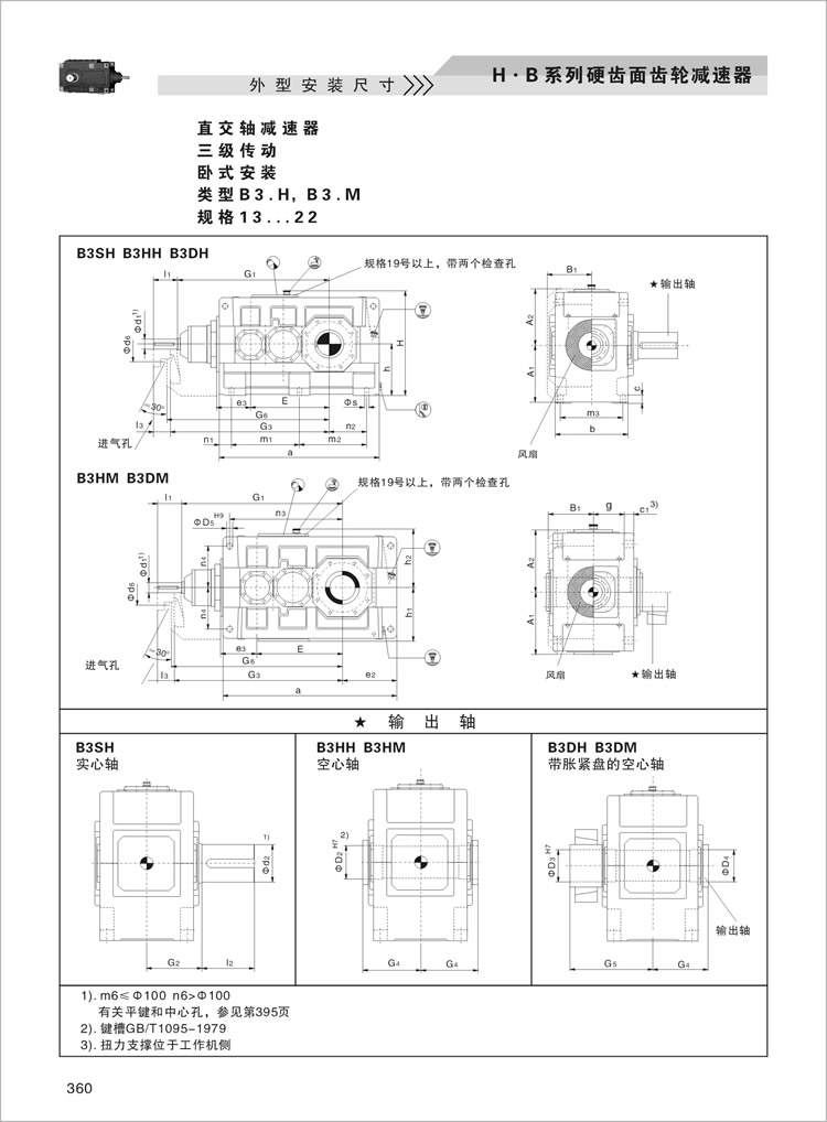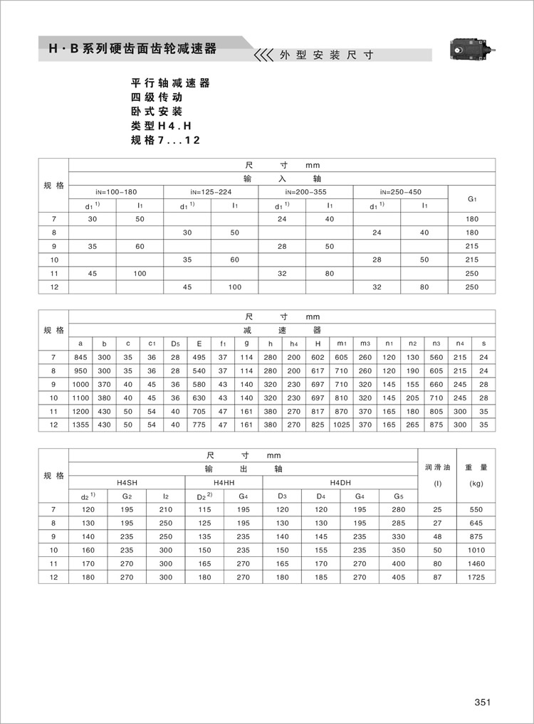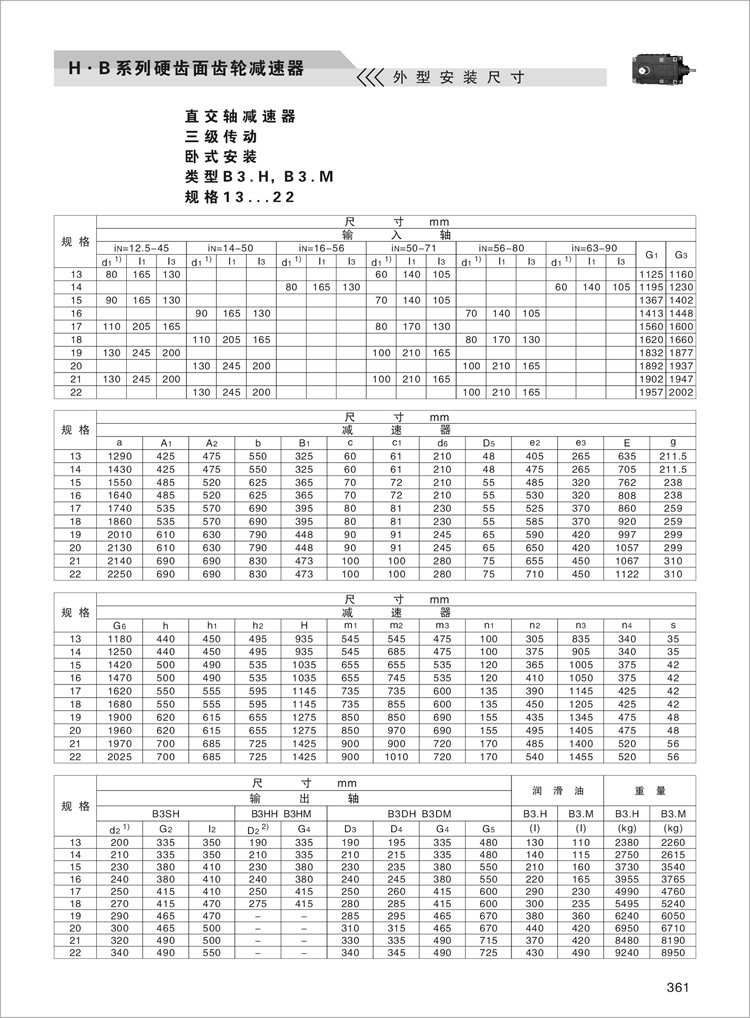 HB系列硬齿面齿轮减速机-外型安装尺寸H4H,H4M,B2H,H2M,B3H,B3M,B4H,B4M,