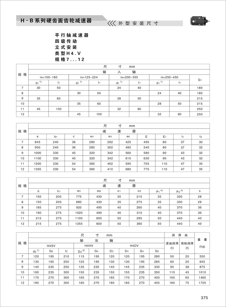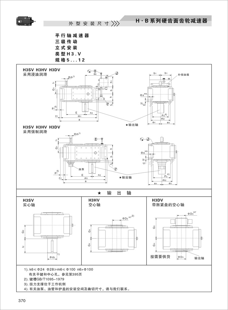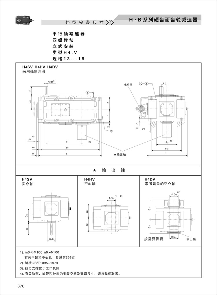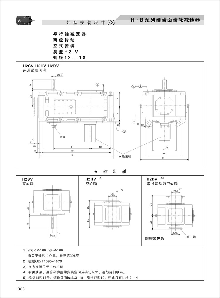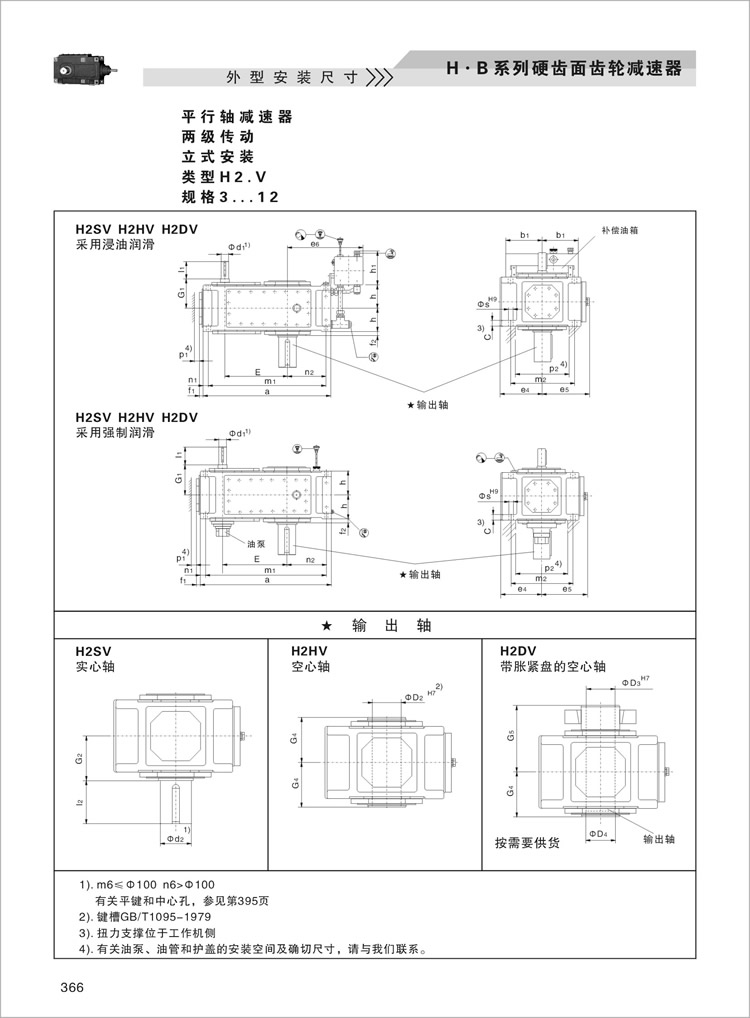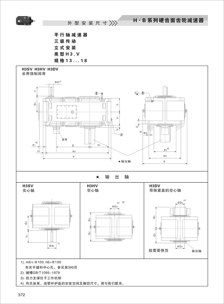 HB系列硬齿面齿轮减速机-外型安装尺寸H2V,H3V,B4V,B2V,B3V,B4V