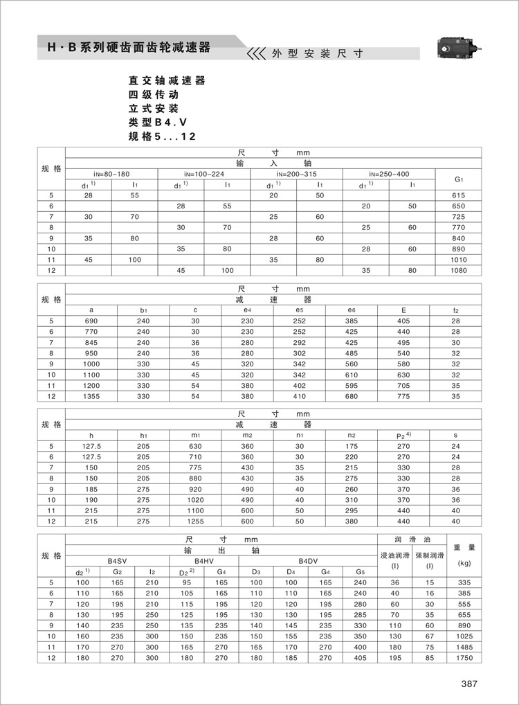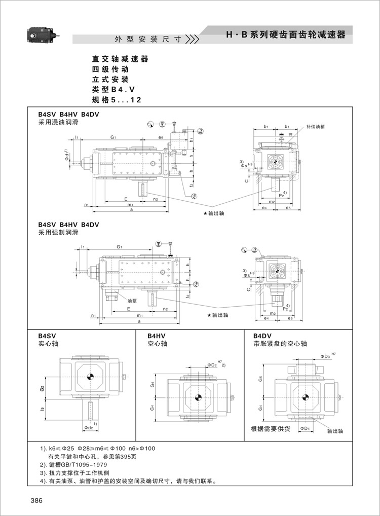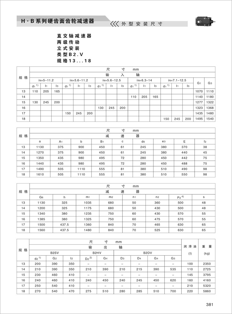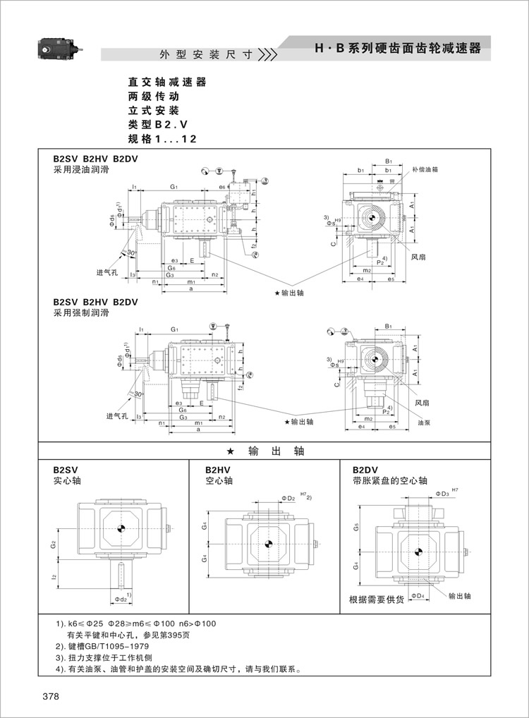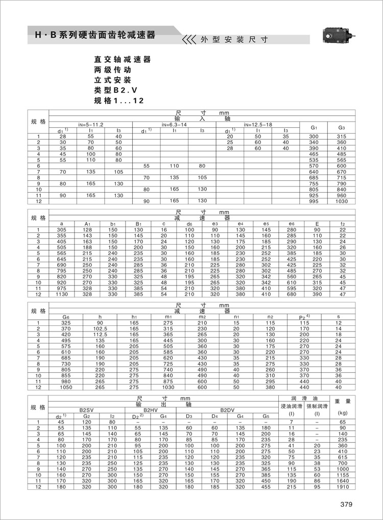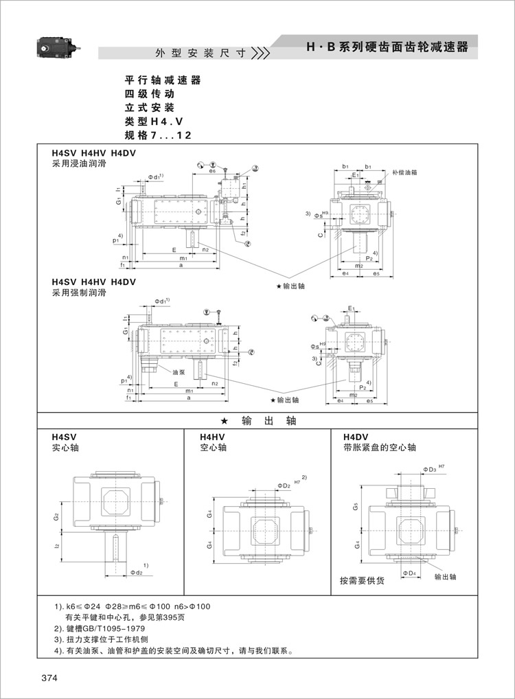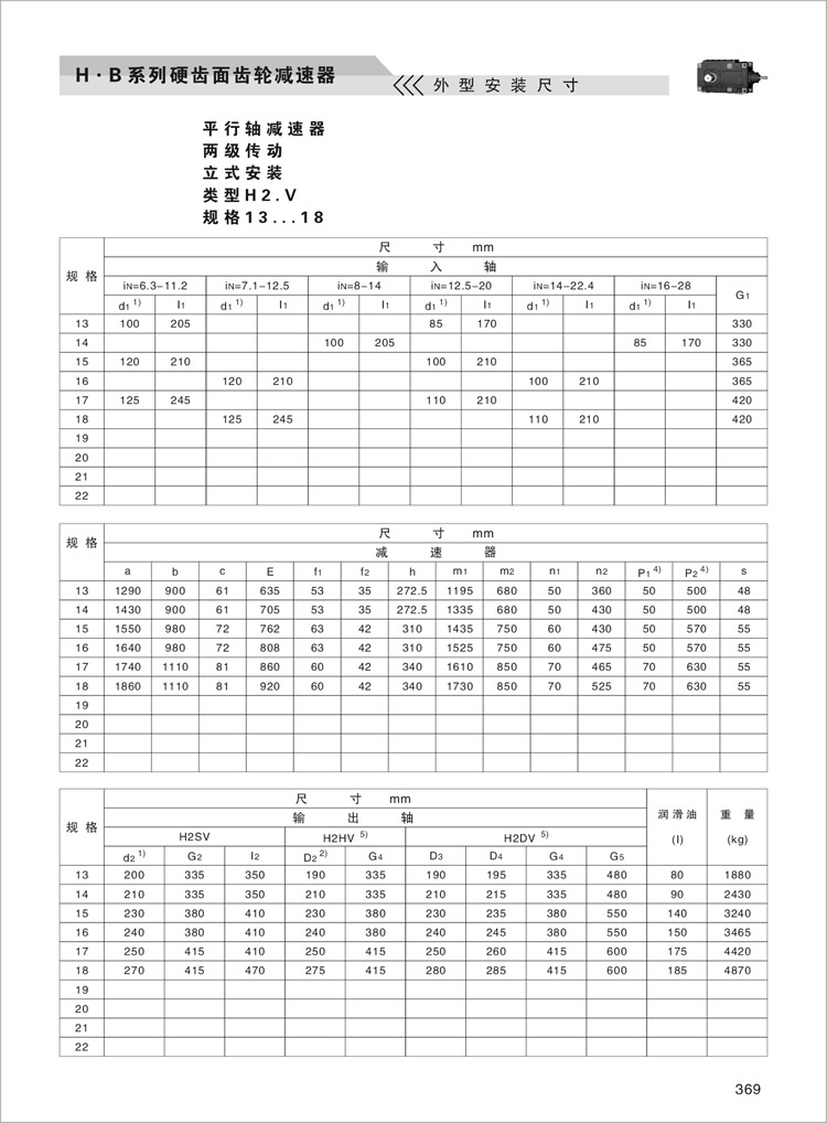 HB系列硬齿面齿轮减速机-外型安装尺寸H2V,H3V,B4V,B2V,B3V,B4V