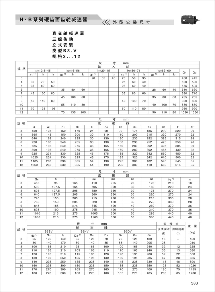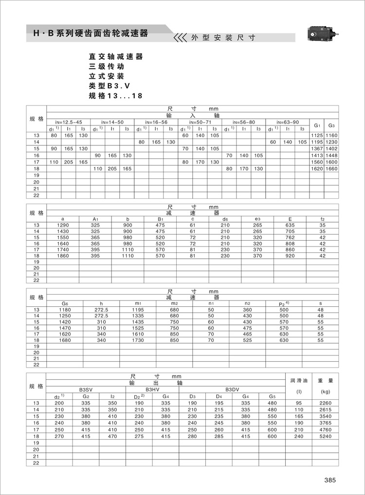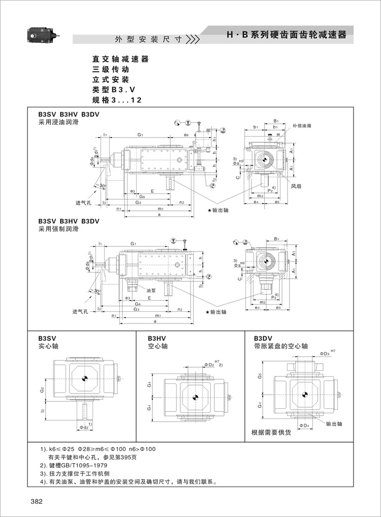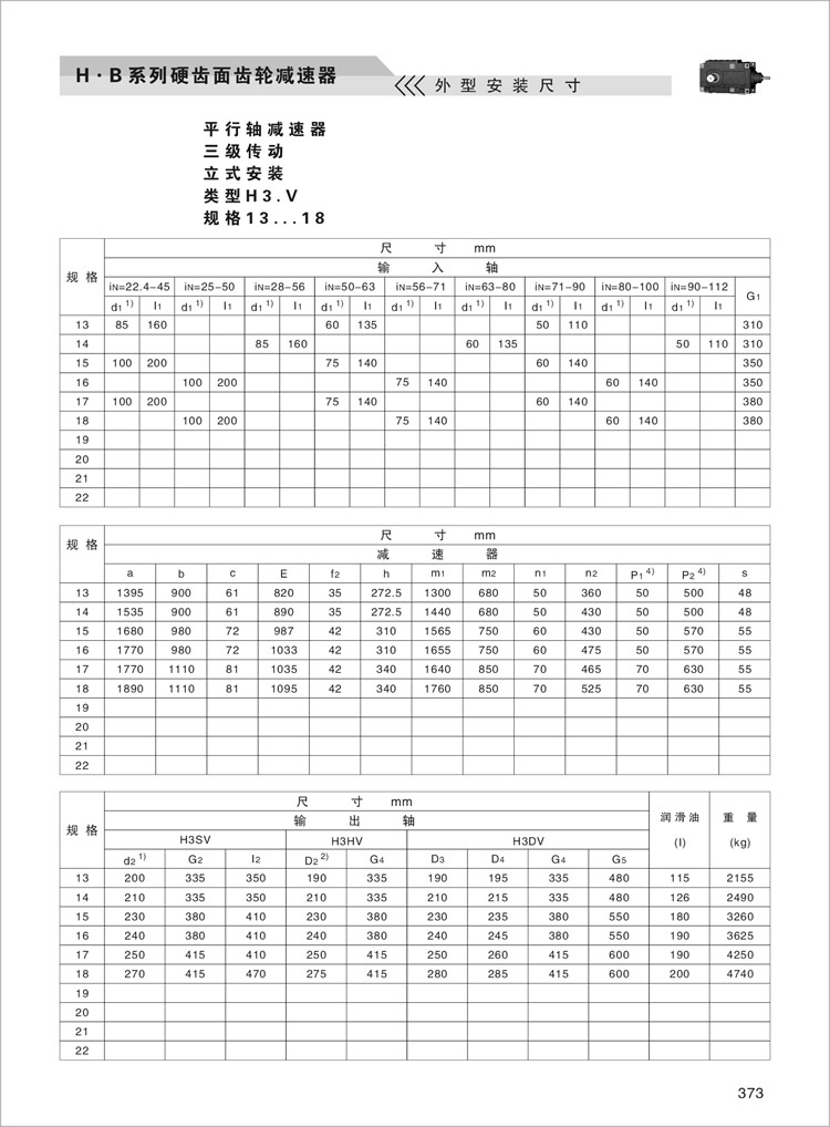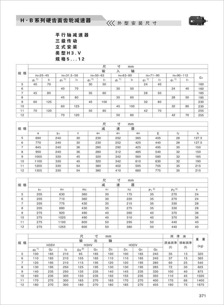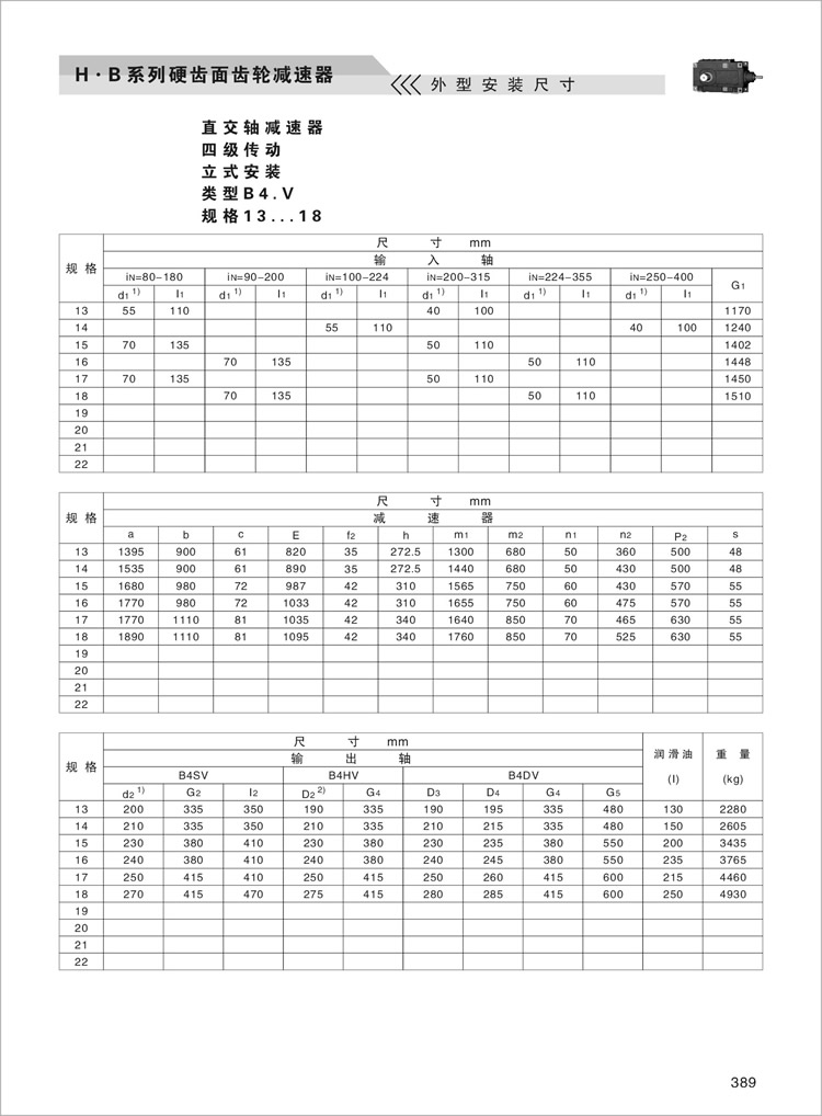 HB系列硬齿面齿轮减速机-外型安装尺寸H2V,H3V,B4V,B2V,B3V,B4V