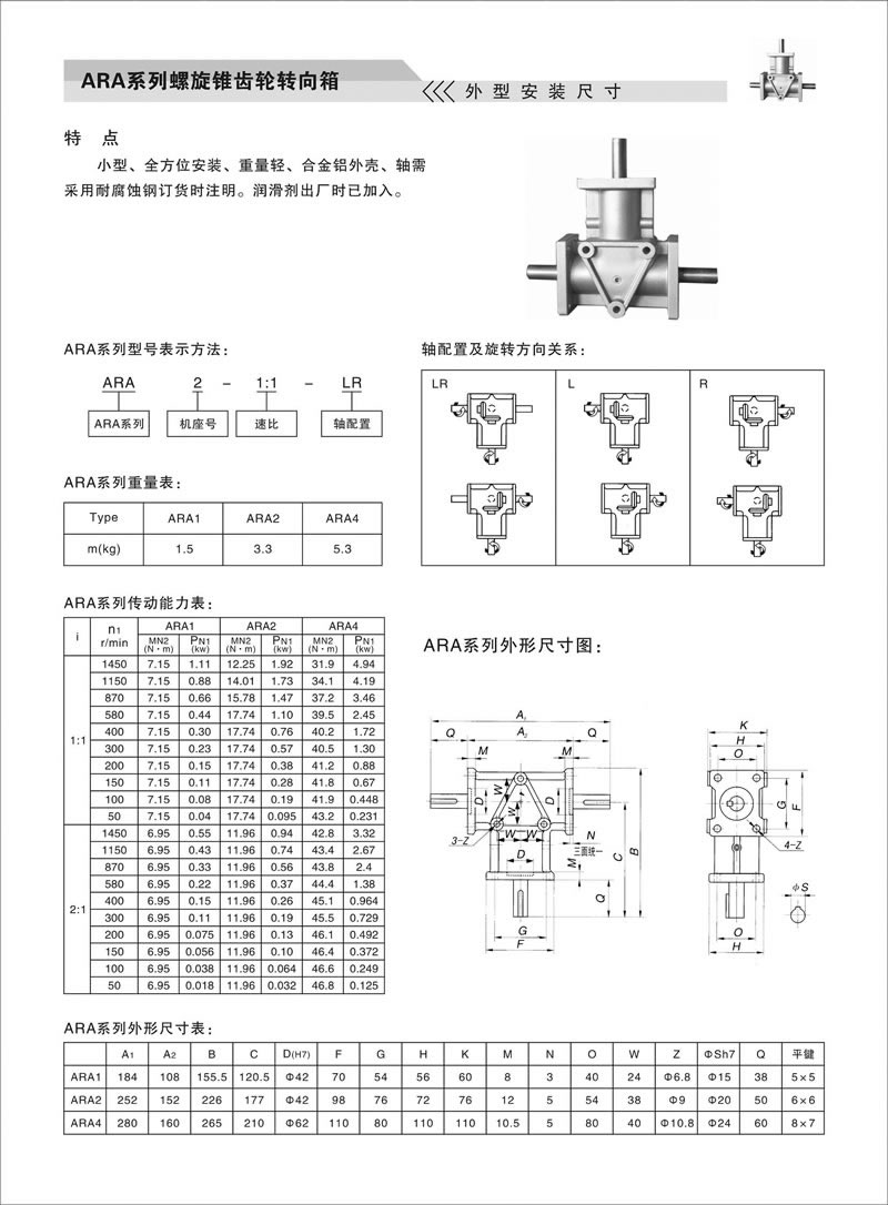 ARA系列螺旋锥齿轮转向器的外型安装尺寸及特点