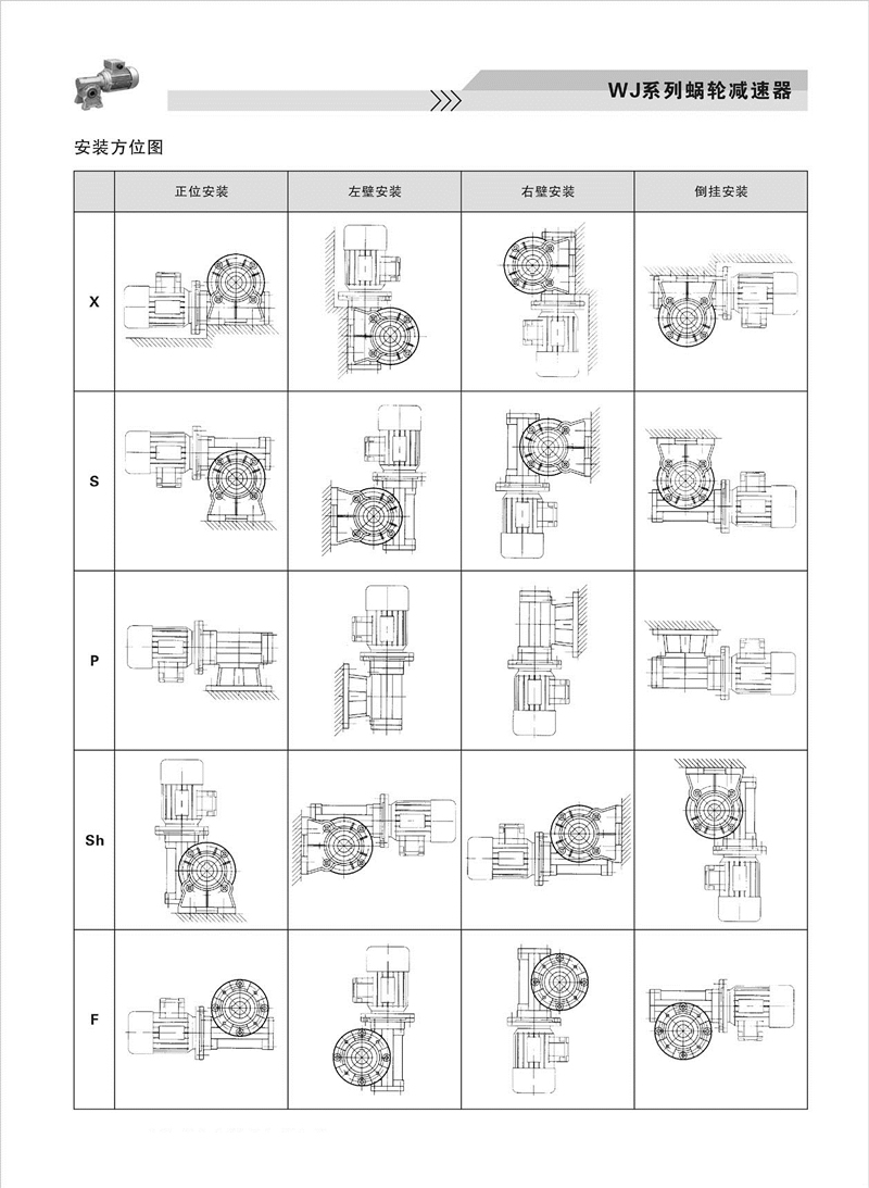 网站首页> 技术参数> WJ系列蜗轮减速机安装方位图