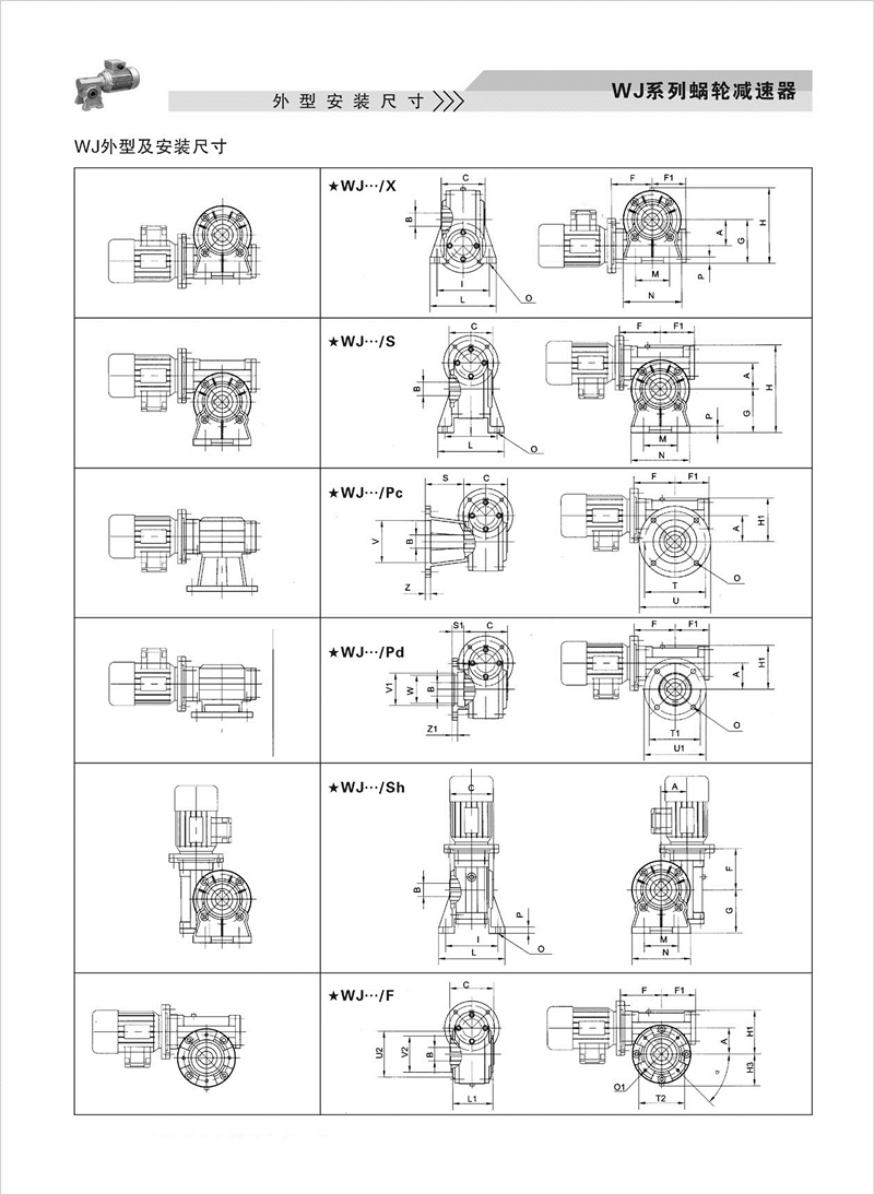 网站首页> 技术参数> WJ系列蜗轮减速机外型及安装尺寸