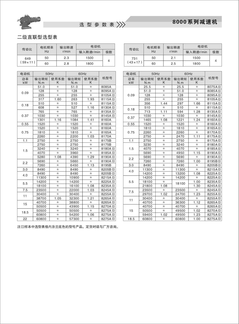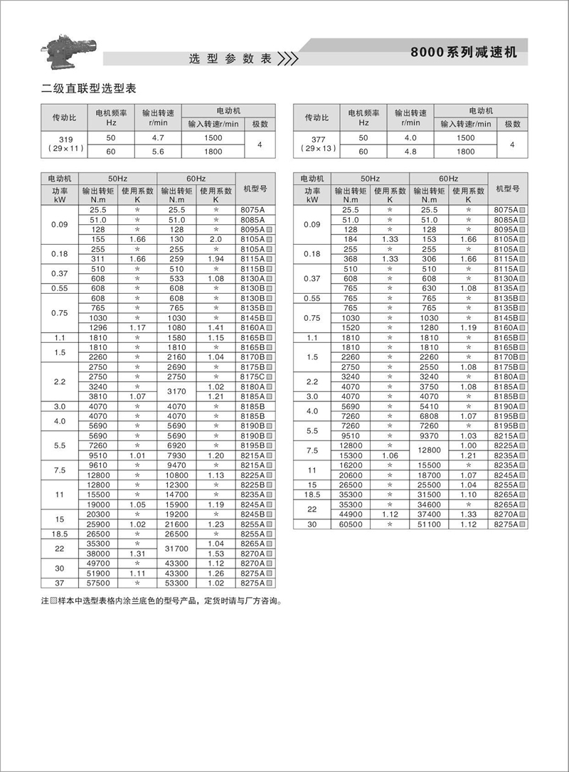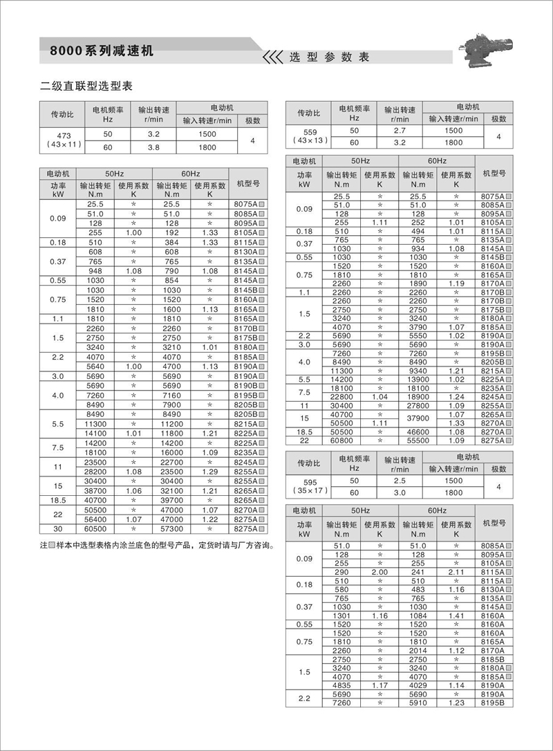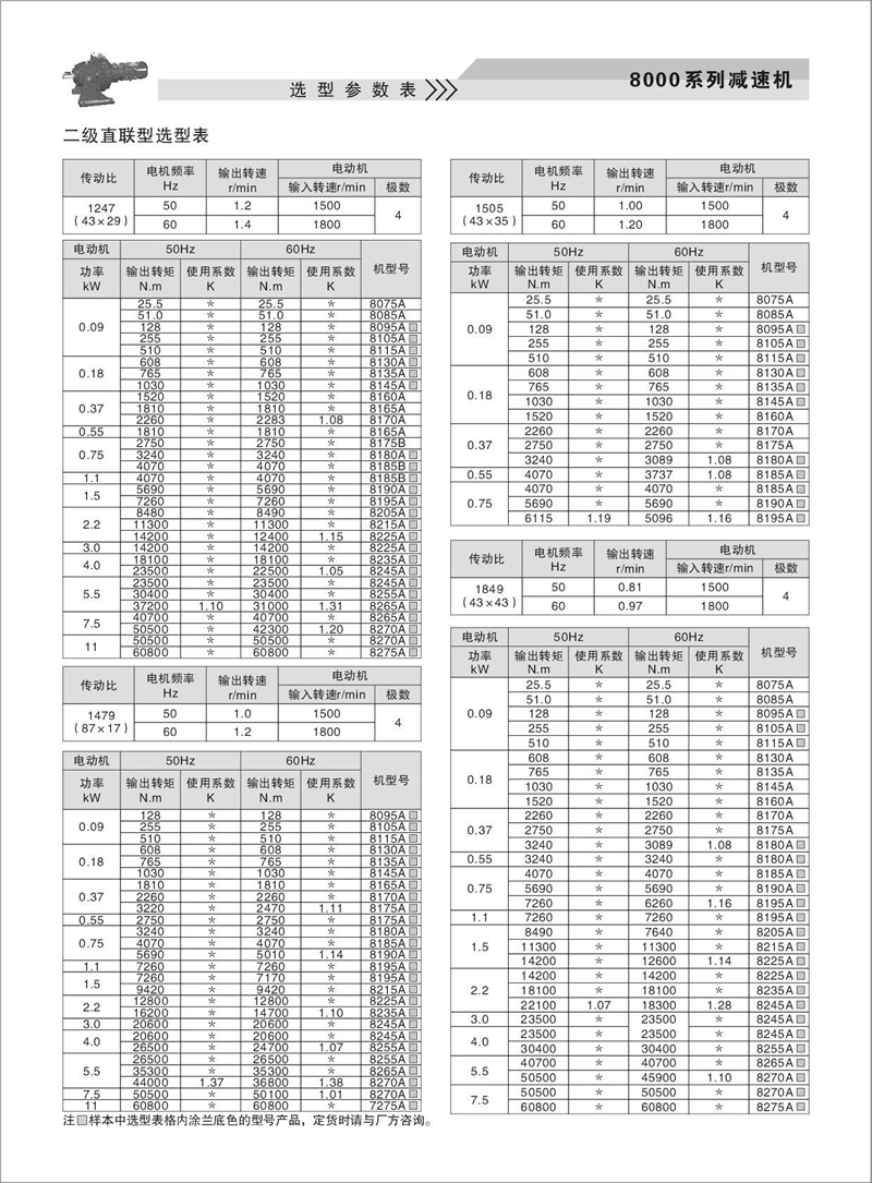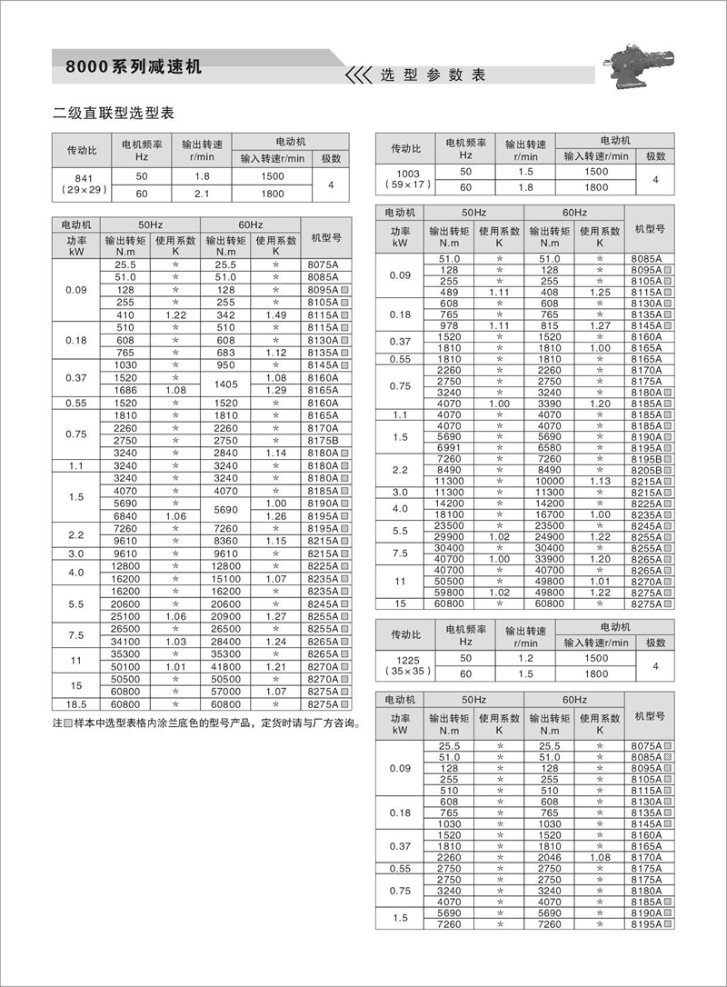 网站首页> 技术参数> 8000系列针轮减速机选型参数表(二级直联型)