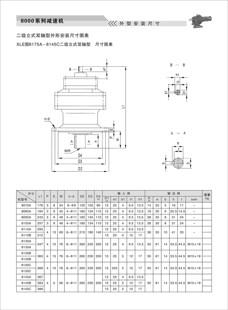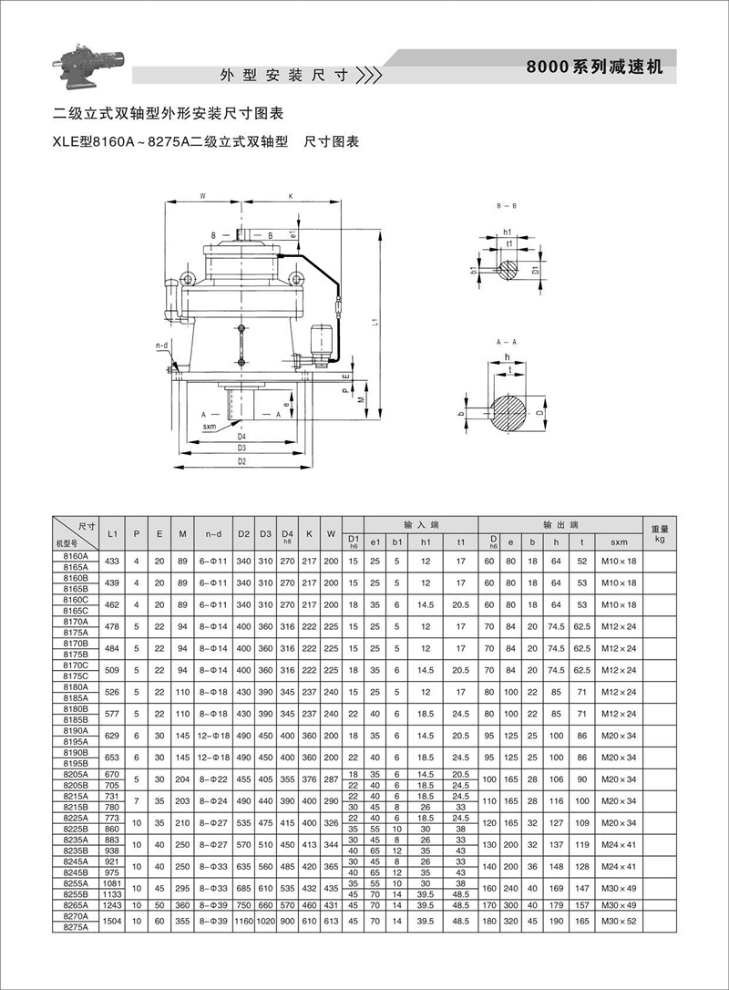 8000系列针轮减速机外型安装尺寸(二级立式双轴型)