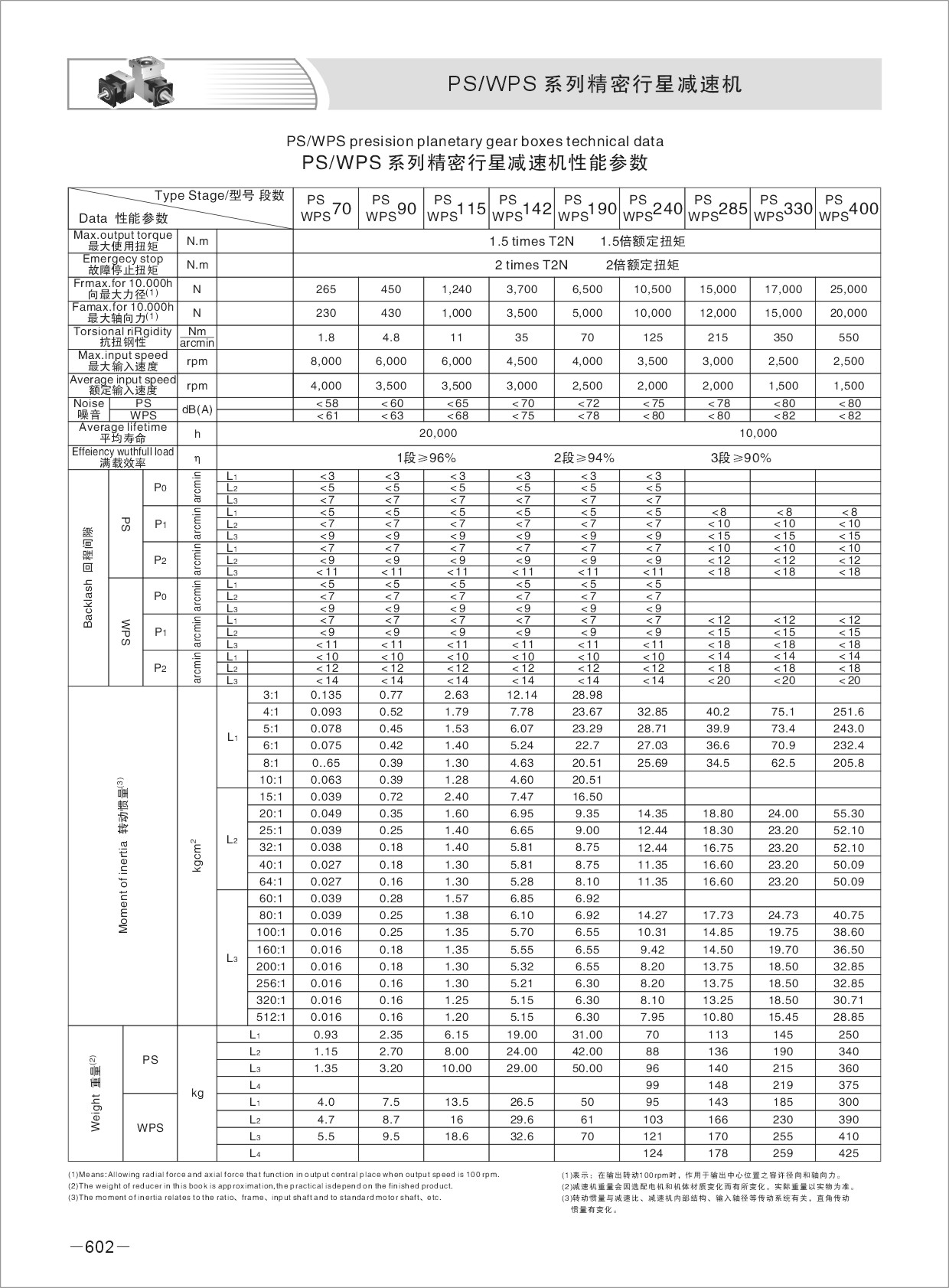 网站首页> 技术参数> 精密行星减速机技术参数1